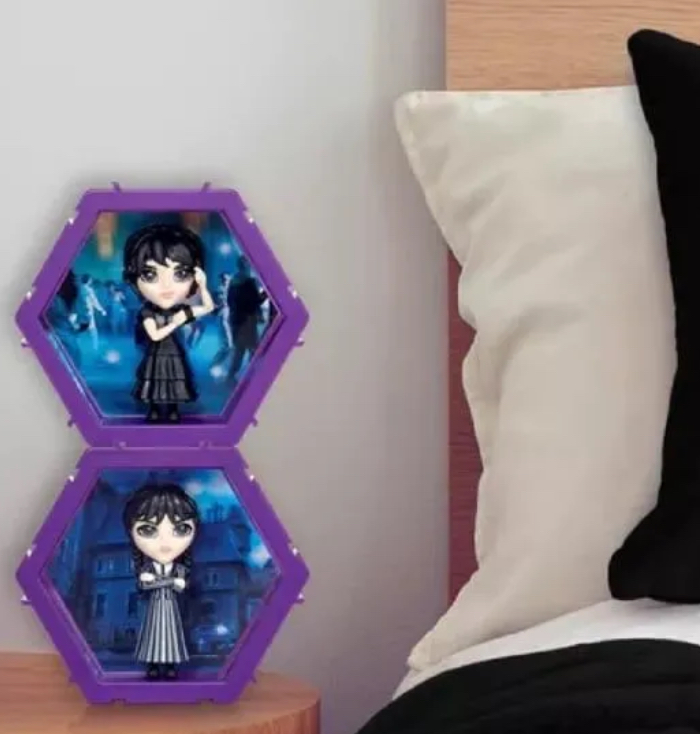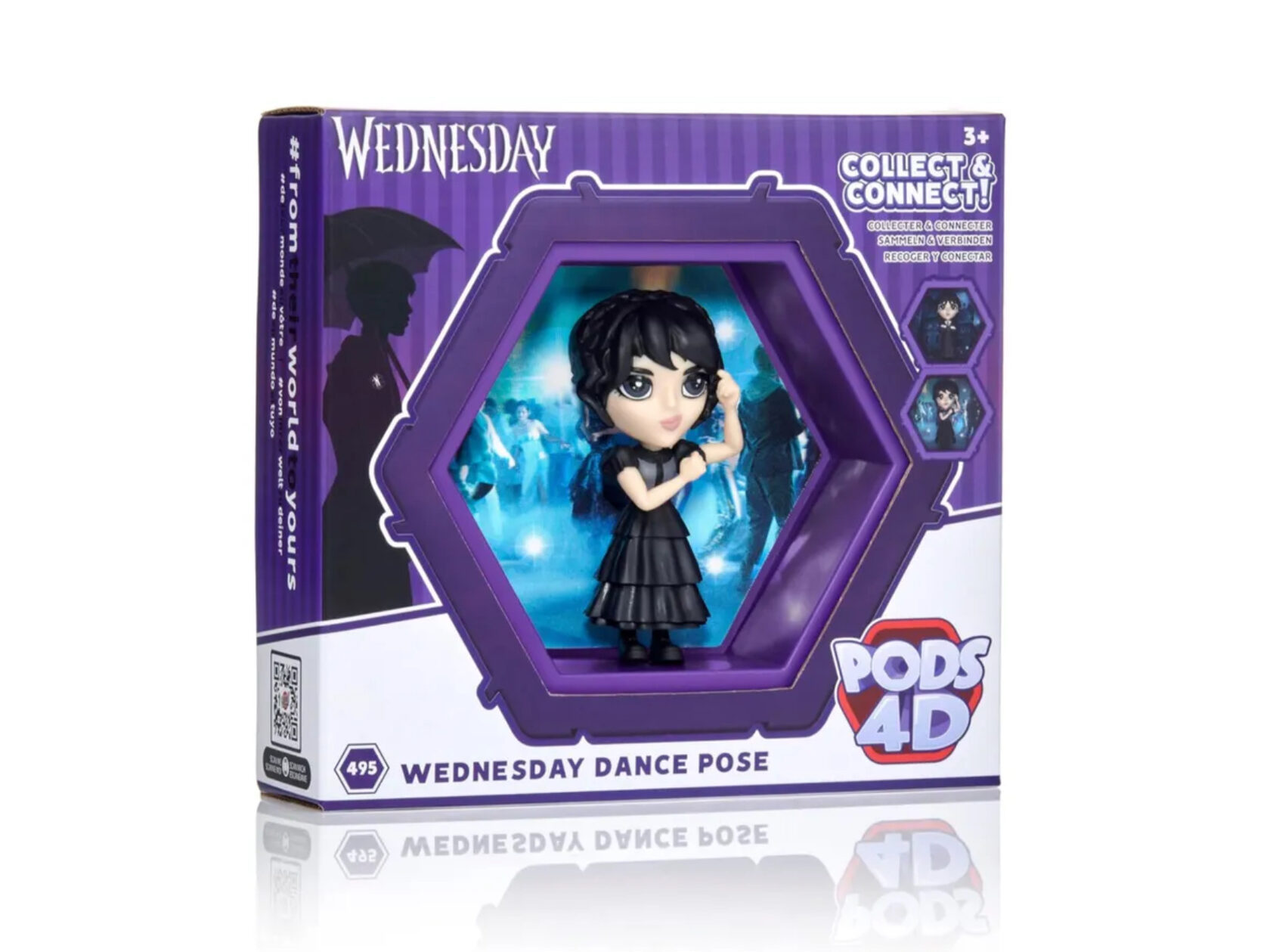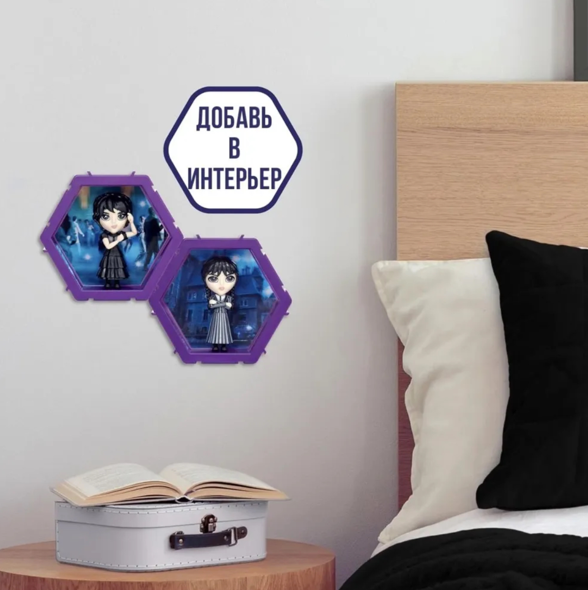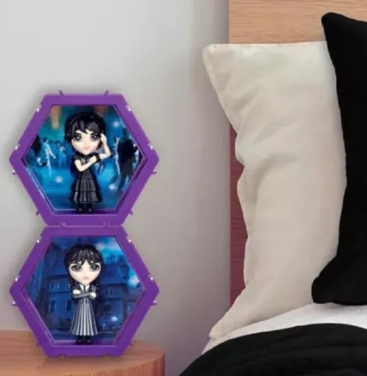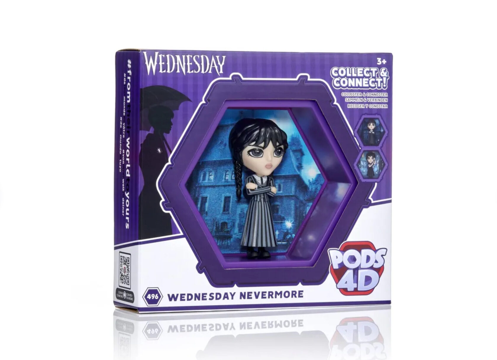 Коллекционная фигурка Pods 4D WednesdayAddams. Двояковыпуклые 3D-фоны высокого разрешения дарят волшебные и совершенно необычные впечатления любителям коллекционных предметов. Уэнсдей, кажется, вырывается из своего мира в ваш с потрясающим 4D-эффектом!Pods 4D соединяются друг с другом. Придумайте и создайте свою собственную уникальную комбинацию и разместите ее на любой стене, полке, столе или подоконнике.В коллекцию входит Уэнсдей в униформеNevermore или в бальном платье - каждое из них продается отдельно.Высота каждой фигурки 8 см. Микрокраска наносится на каждого персонажа при окончательной сборке, а затем монтируется перед 3D-лентикулярным задником высокого разрешения. Эффект 4D оживляет ваших персонажей.