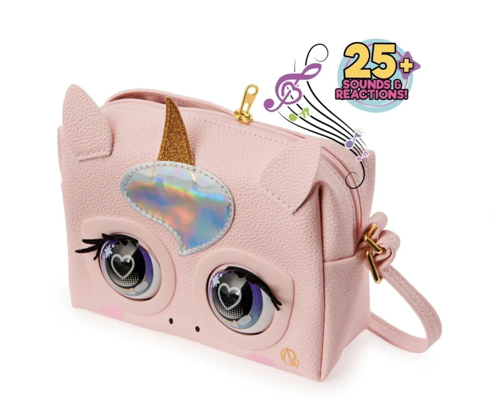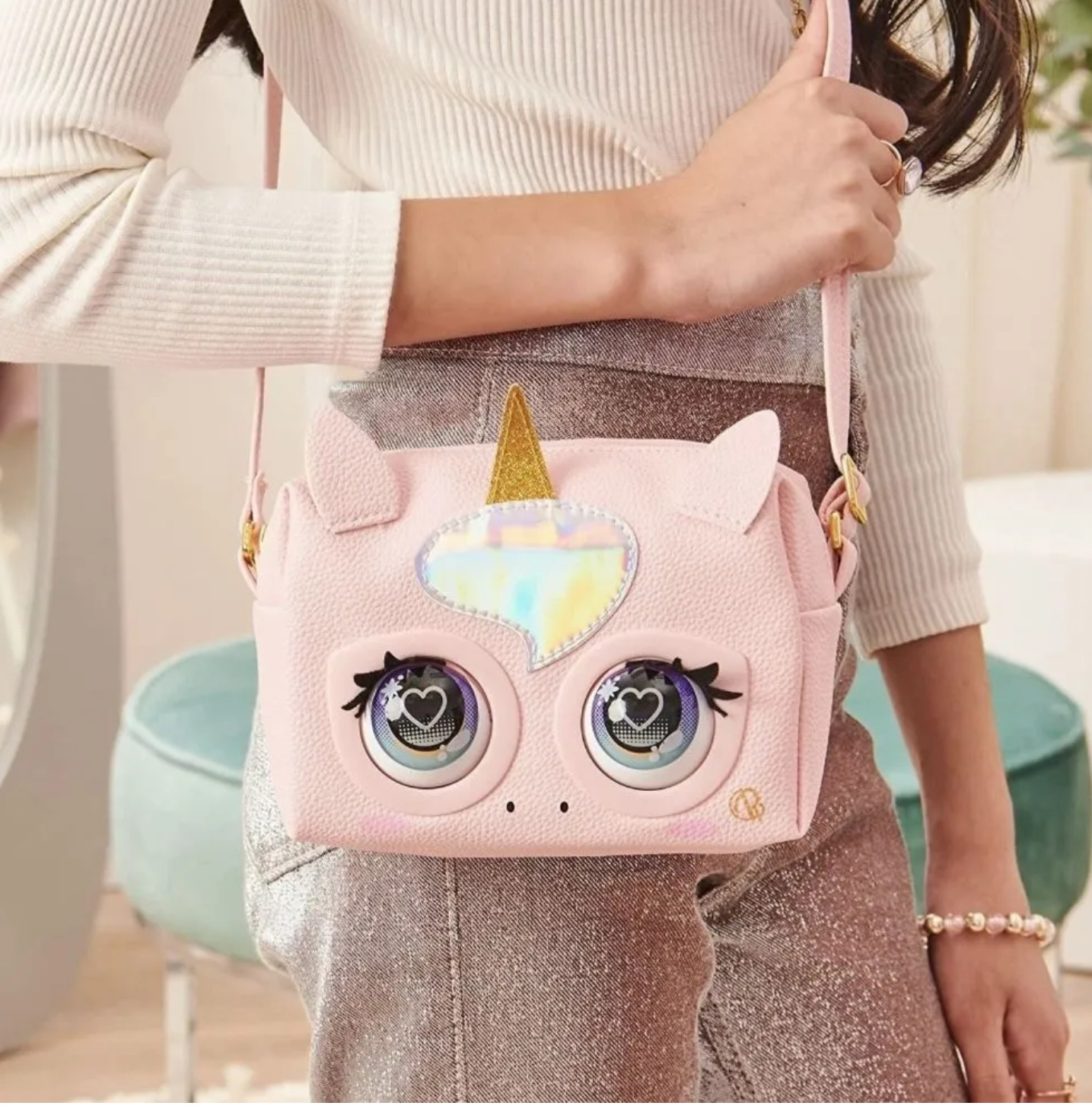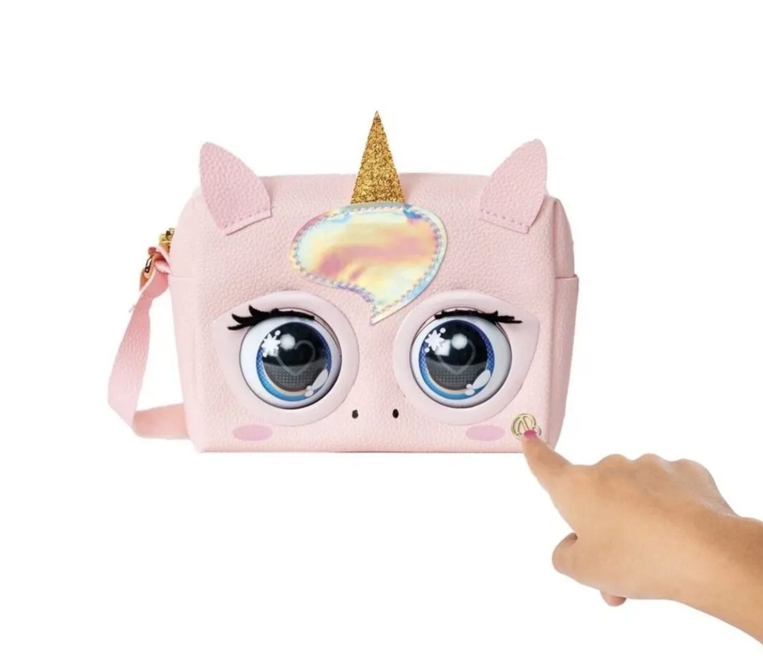 ПРЕМИАЛЬНЫЙ ДИЗАЙН: сумочка-питомец единорог выполнена из искусственной кожи розового цвета, декорирована переливающимися элементами и металлической фурнитурой. Длина ремешка регулируется. ИНТЕРАКТИВНЫЙ ПИТОМЕЦ: сумочка не просто аксессуар, а настоящий питомец! Она умеет моргать и реагирует на твой голос, прикосновения и движения. ИГРЫ И ЗВУКИ: Задай своему питомцу вопрос "да" или "нет", и она ответит! Включи музыку и продемонстрируй свой образ в режиме «Подиум». СТИЛЬНЫЙ АКСЕССУАР: Сумочка-питомец это идеальный подарок для девочек от 5-ти лет. Размеры сумочки 10,5 см (В) х 15,5 см (Ш) х 6 см (Г). В наборе: 1 сумочка-питомец, 1 инструкция. ВНИМАНИЕ! Для работы требуются батарейки: 3 х ААА