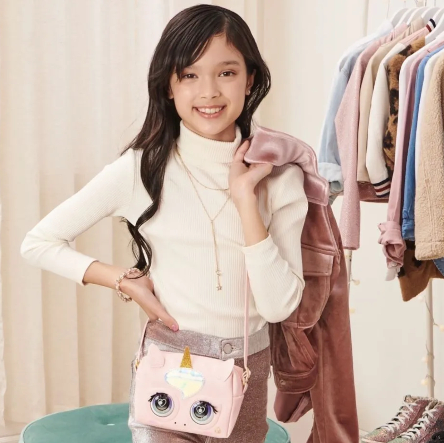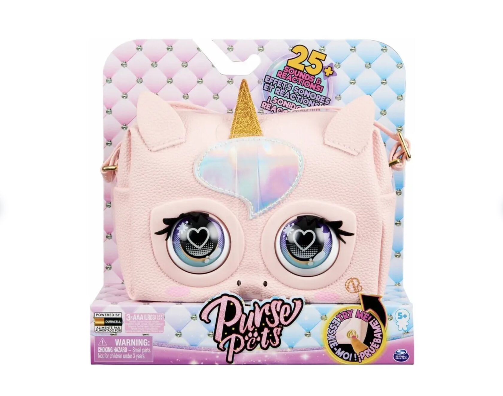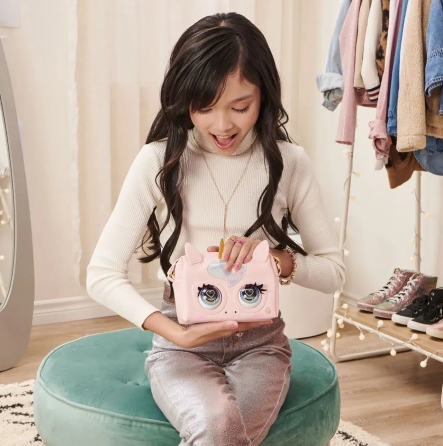 ПРЕМИАЛЬНЫЙ ДИЗАЙН: сумочка-питомец единорог выполнена из искусственной кожи розового цвета, декорирована переливающимися элементами и металлической фурнитурой. Длина ремешка регулируется. ИНТЕРАКТИВНЫЙ ПИТОМЕЦ: сумочка не просто аксессуар, а настоящий питомец! Она умеет моргать и реагирует на твой голос, прикосновения и движения. ИГРЫ И ЗВУКИ: Задай своему питомцу вопрос "да" или "нет", и она ответит! Включи музыку и продемонстрируй свой образ в режиме «Подиум». СТИЛЬНЫЙ АКСЕССУАР: Сумочка-питомец это идеальный подарок для девочек от 5-ти лет. Размеры сумочки 10,5 см (В) х 15,5 см (Ш) х 6 см (Г). В наборе: 1 сумочка-питомец, 1 инструкция. ВНИМАНИЕ! Для работы требуются батарейки: 3 х ААА