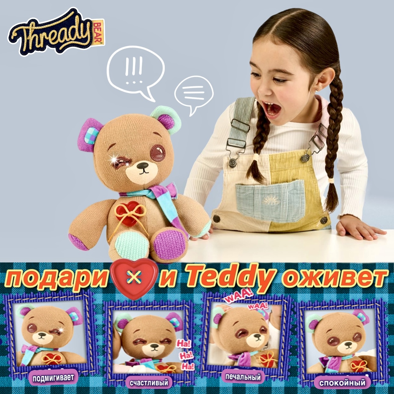 Мишка Тедди Нитевидный интерактивный, его волшебные глазки-пуговки показывают, когда он радуется или грустит, и он даже может подмигивать!