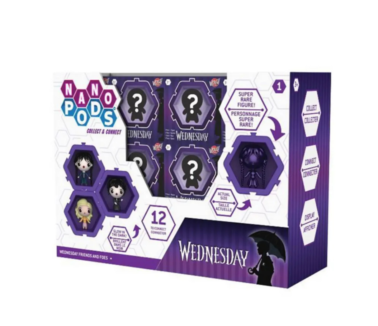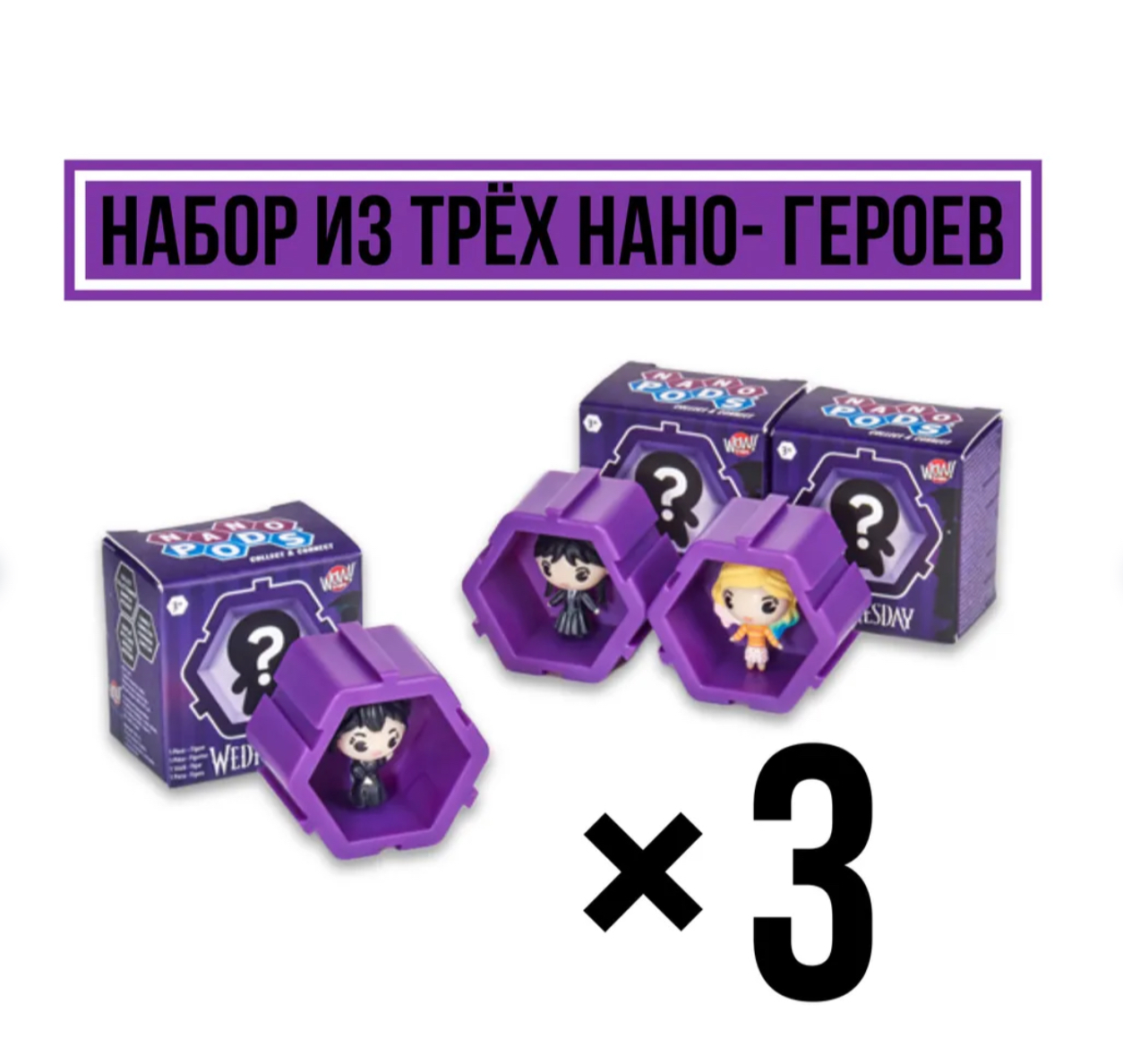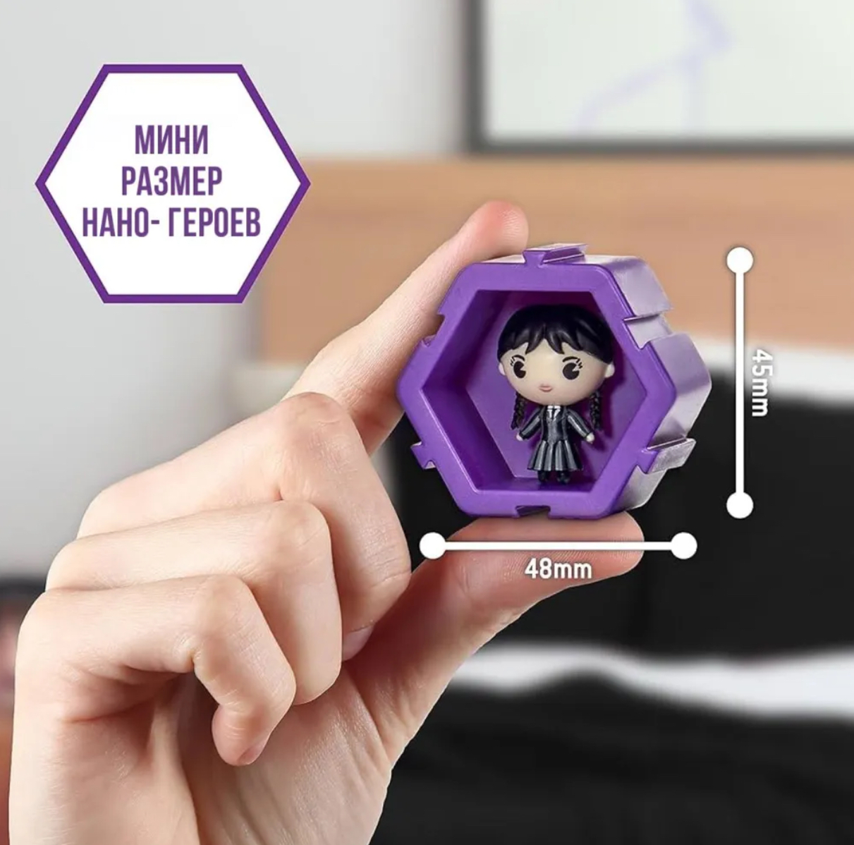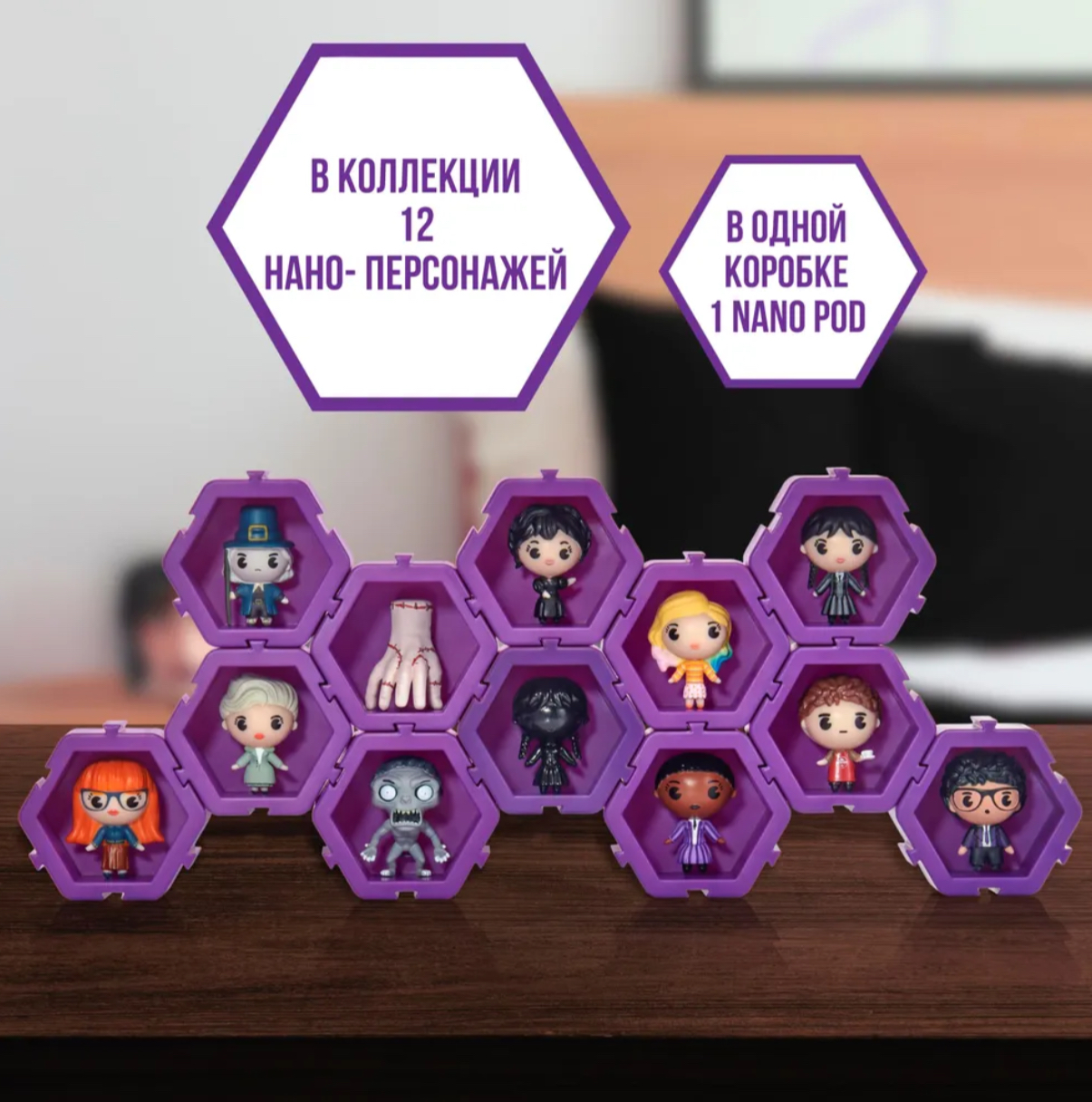 НАНО РАЗМЕР И НАНО ДЕТАЛИ! Фигурки попадаются рандомно! Для фанатов «Уэнсдей Аддамс»!Премиальные микродетали и уникальный внешний вид сделали этих очаровательных и очень милых персонажей предметом коллекционирования. Нано-персонаж заключен в собственную идеальную мини-капсулу. Подключитесь к NANO PODS другого персонажа за наносекунду!• ТАЙНАЯ КОРОБКА Персонаж внутри - сюрприз! 12 персонажей: НАНОКАДУЛКИ персонажей Аддамса, которые можно обменивать, обменивать и собирать в волне 1. По мере пополнения коллекции проверяйте персонажей в прилагаемом Руководстве для коллекционеров!• НАЙДИТЕ РЕДКИЕ! Кого вы найдете в распаковке? В первую волну входятУэнсдей, Энид, Хайд, Бьянка, Юджин, Крэкстоун, Тайлер, Ларисса и многие другие! Также обратите внимание на редкую фигурку Чейза с металлизированной отделкой!СВЕТИТЬСЯ В ТЕМНОТЕ! Подключите Nano Pods и выключите свет, чтобы увидеть великолепную функцию «Свечение в темноте»! Собирайте, подключайте и демонстрируйте свой путь. Создайте слово, свое имя, название бренда или изображения знаковых персонажей!