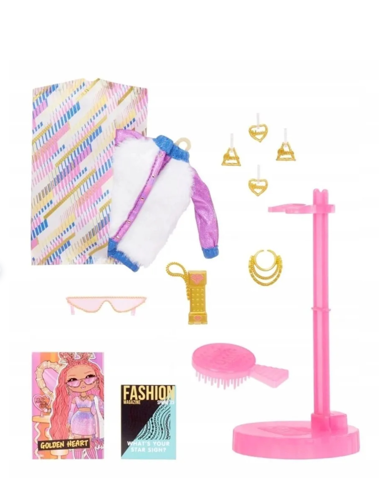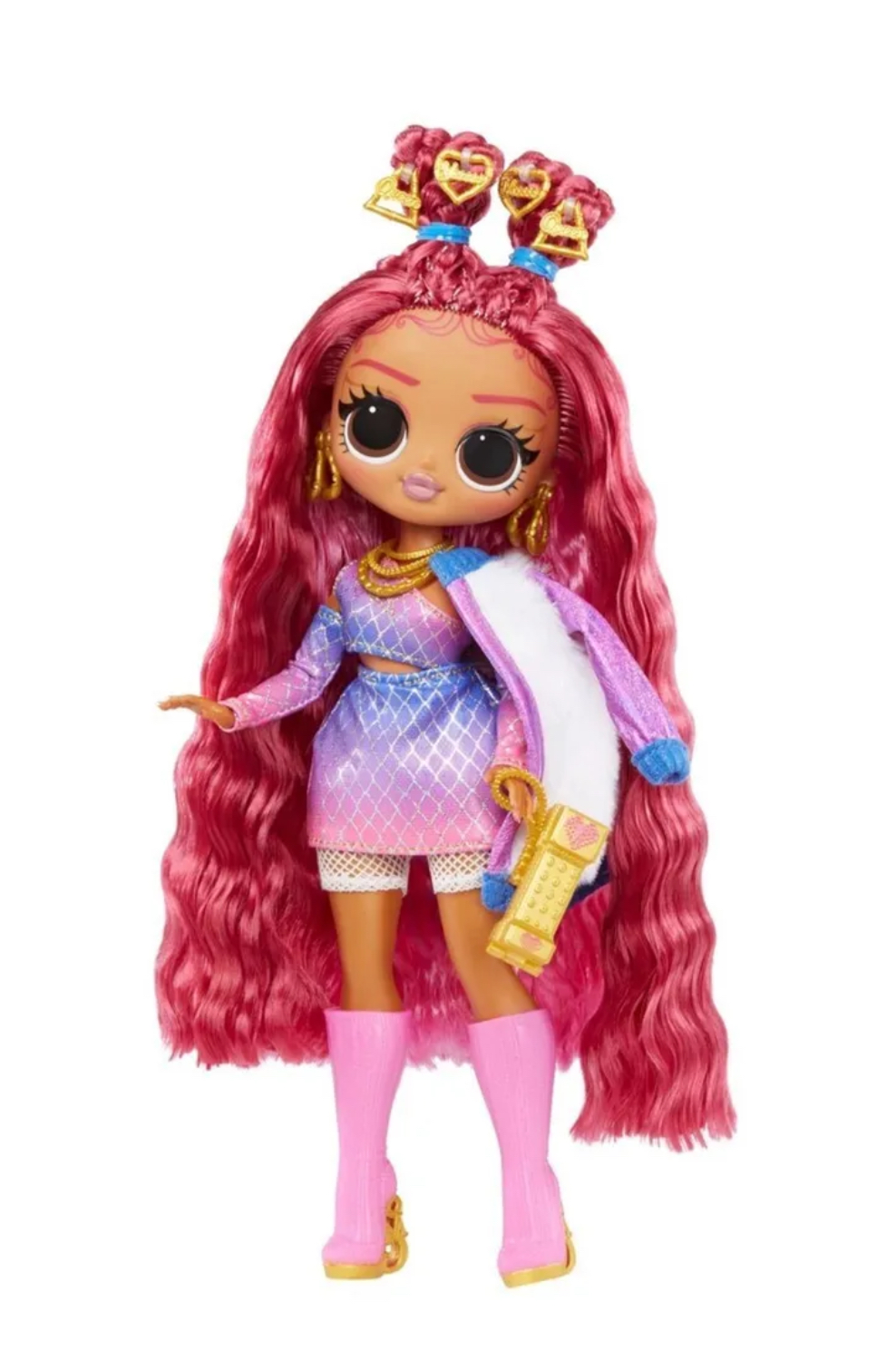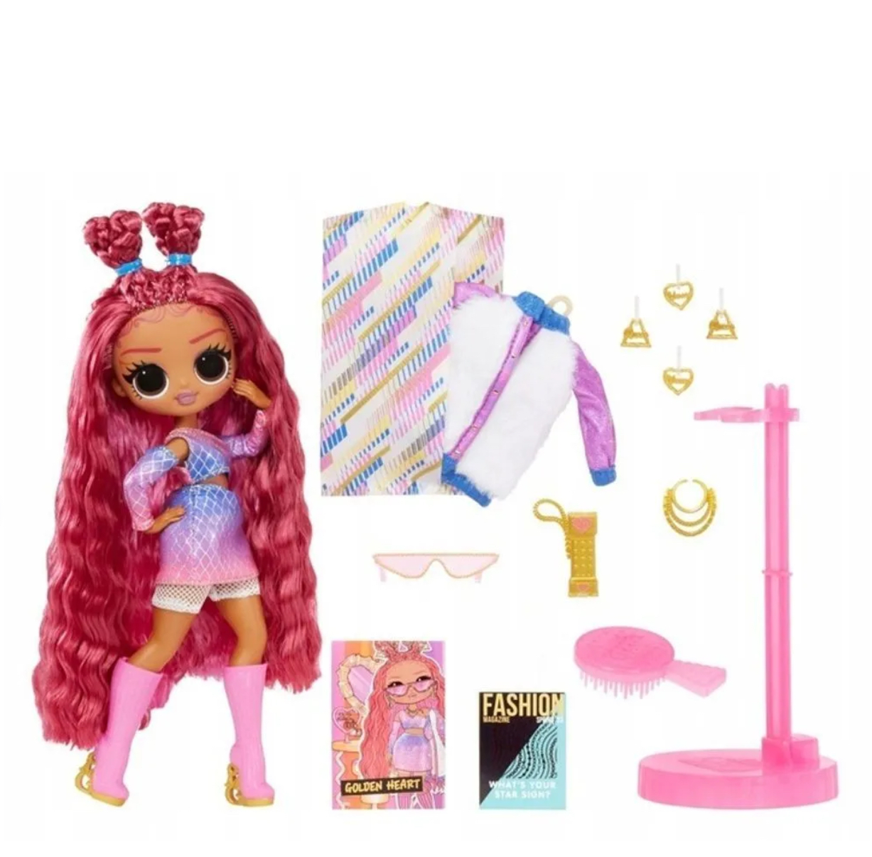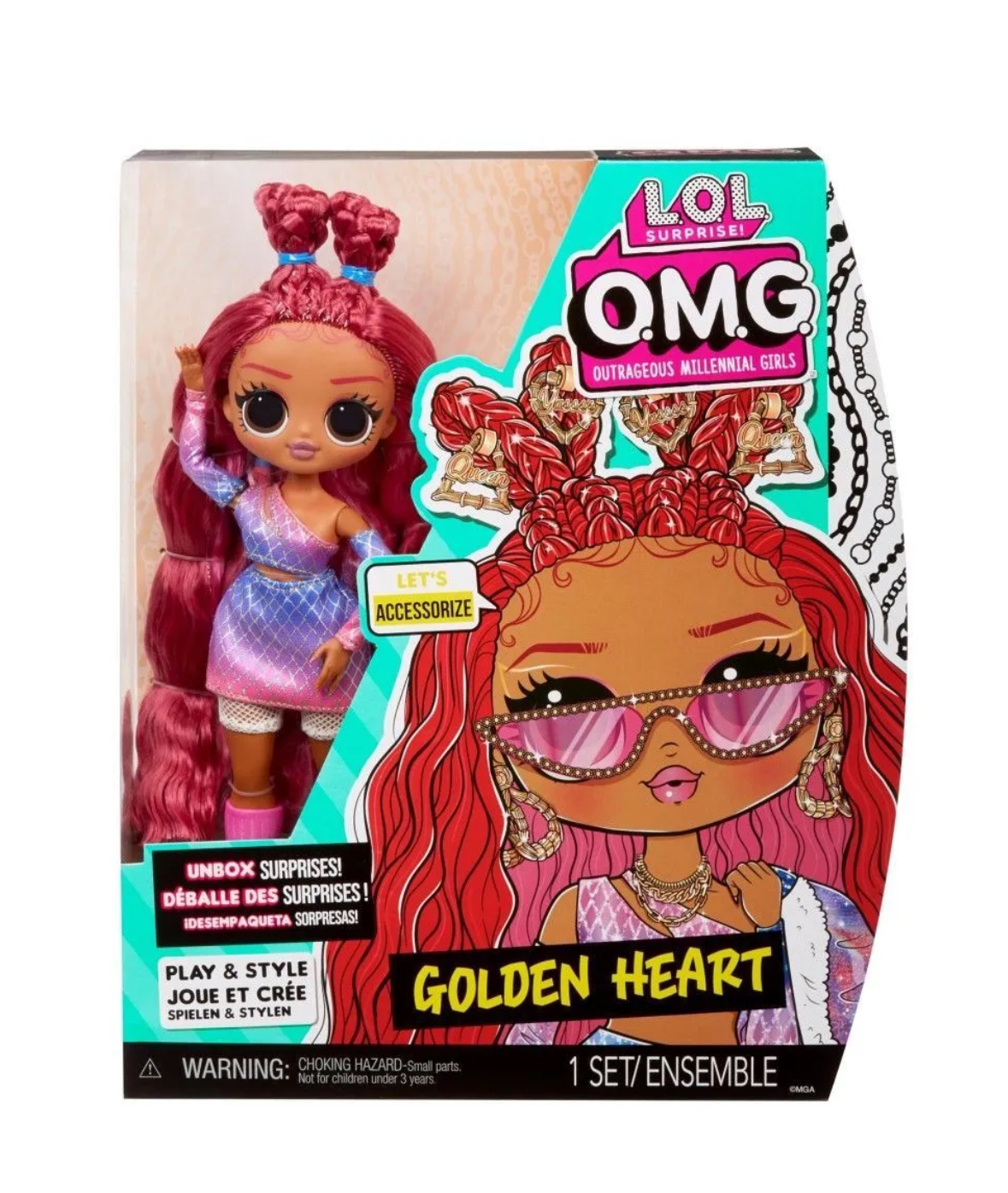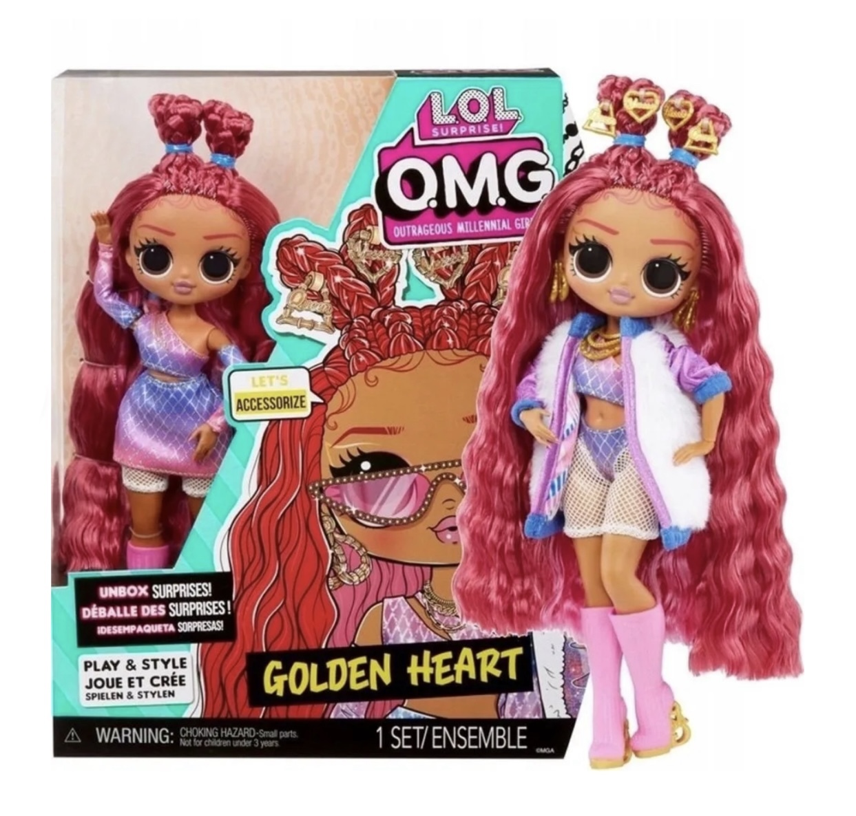 Модная куколка серии «O.M.G.»; ЗОЛОТОЕ СЕРДЦЕ - настоящая модная фея! Она обожает блестящую одежду и красивые аксессуары. У нее потрясающее чувство стиля! Большая и яркая куколка высотой 25 cm, модная одежда, шикарные волосы, и стильные аксессуары. Много сюрпризов при распаковке кукол L.O.L. Surprise! Новой 7 серии линейки O.M.G. Кукла имеет шарнирные руки, что дает возможность придумывать еще больше интересных сценариев для игры.Подставка для куклы может быть как подставкой, так и стульчиком. В игровой набор входит: • Модная кукла L.O.L. Surprise! серии 'O.M.G. • Одежда • Обувь • Серьги • Сумочка • Расчёска для волос • Подставка для куклы • Аксессуары