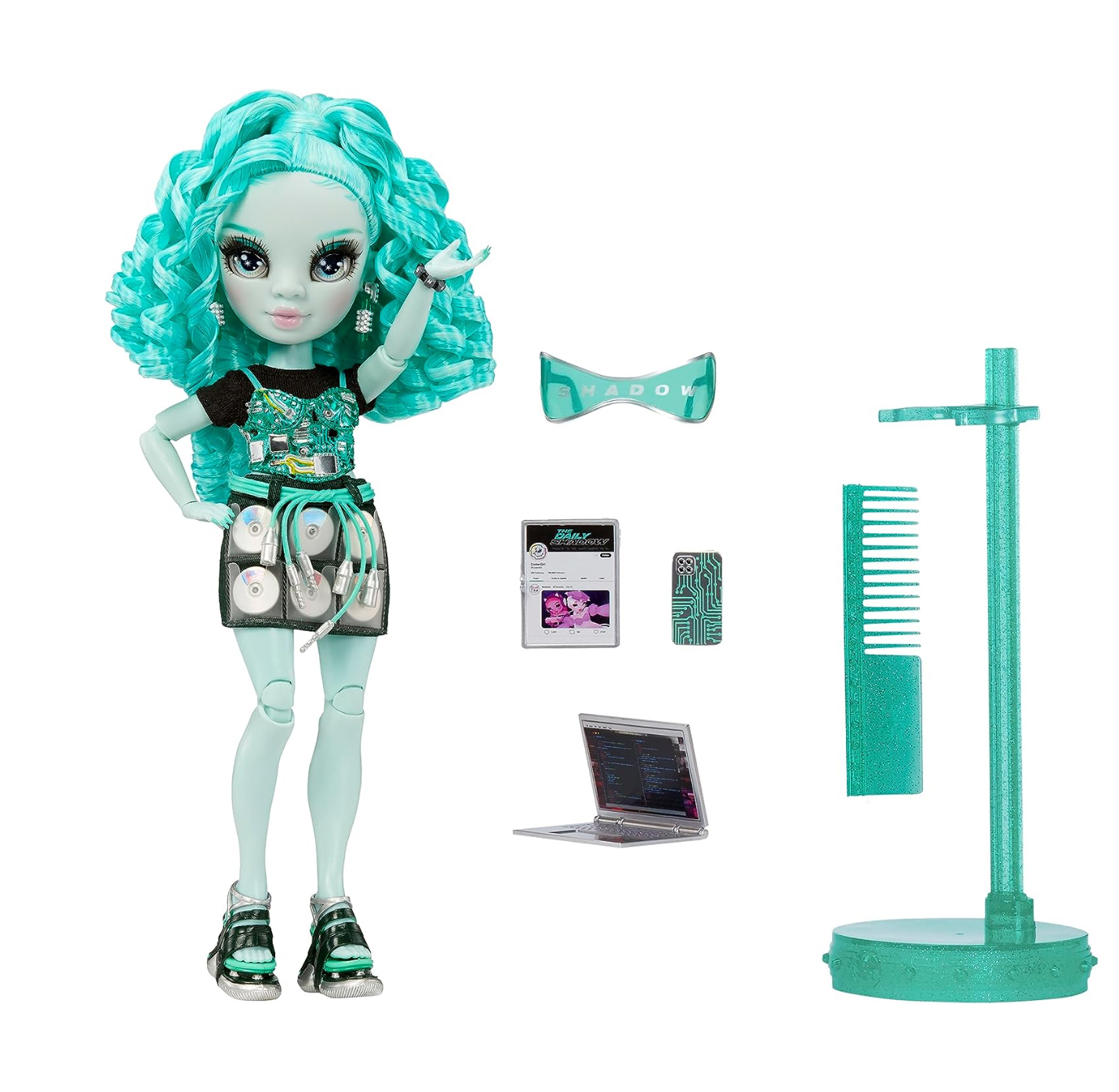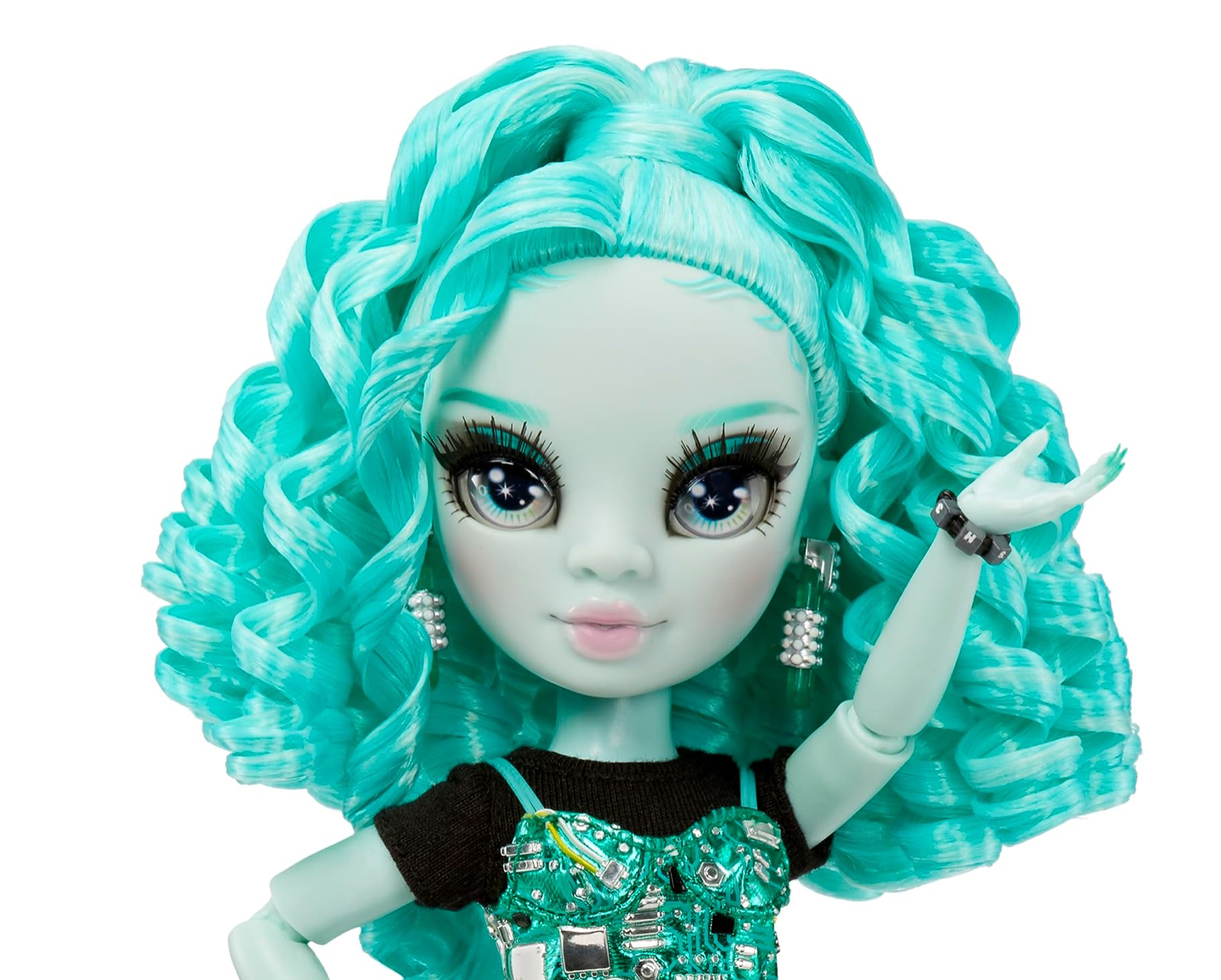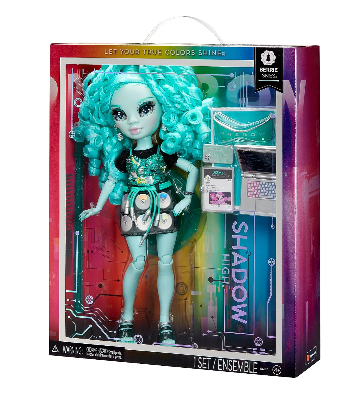 Радуга предназначена для всех. Куклы Rainbow High Shadow High входят в красочную коллекцию, представляющию классические цвета радуги, но с уникальными приглушенными тонами кожи Shadow High. Берри среднего телосложения со светло-зеленой кожей. У нее вьющиеся сине-зеленые волосы. У нее также серовато-бирюзовые глаза, выцветшие сине-зеленые и белые брови и нежно-розовая и нежно-сине-зеленая помада.Берри носит простую черную футболку с переливающейся сине-зеленой геометрической рубашкой поверх. Она также носит юбку, которая напоминает футляр для DVD, поскольку в ее юбке много сине-зеленых DVD-дисков внутри пластикового клапана. Что касается ее обуви, то она носит черные, сине-зеленые и белые туфли на круглой подошве. Она дополняет аксессуарами серьги-кубики с жемчугом и черный браслет на правой руке, а ее ногти выкрашены в сине-зеленый цвет. В комплект входит модная кукла, 1 комплект одежды для куклы, 1 пара туфель на каблуках, 1 пара сережек, 1 браслет, 1 пара солнцезащитных очков, 1 сотовый телефон, 1 планшет, 1 компьютер, 1 расческа, подставка для куклы.Игрушка имеет шарнирное строение, что позволяет придавать множество разнообразных поз фигурке. Высота куклы 28 см. Совет: перед игрой тщательно вымойте волосы кукле, что бы смыть гель для укладки. Высушите волосы до суха и расчешите. Соберите все 6 модных кукол Shadow: Пинки Джеймс – розовая, Скарлет Роуз – темно-бордовая, Рози Редвуд – красная, Берри Скайс – Зеленая, Оливер Оушен – голубая, Лаванда Линн – фиолетовая. Куклы продаются отдельно.