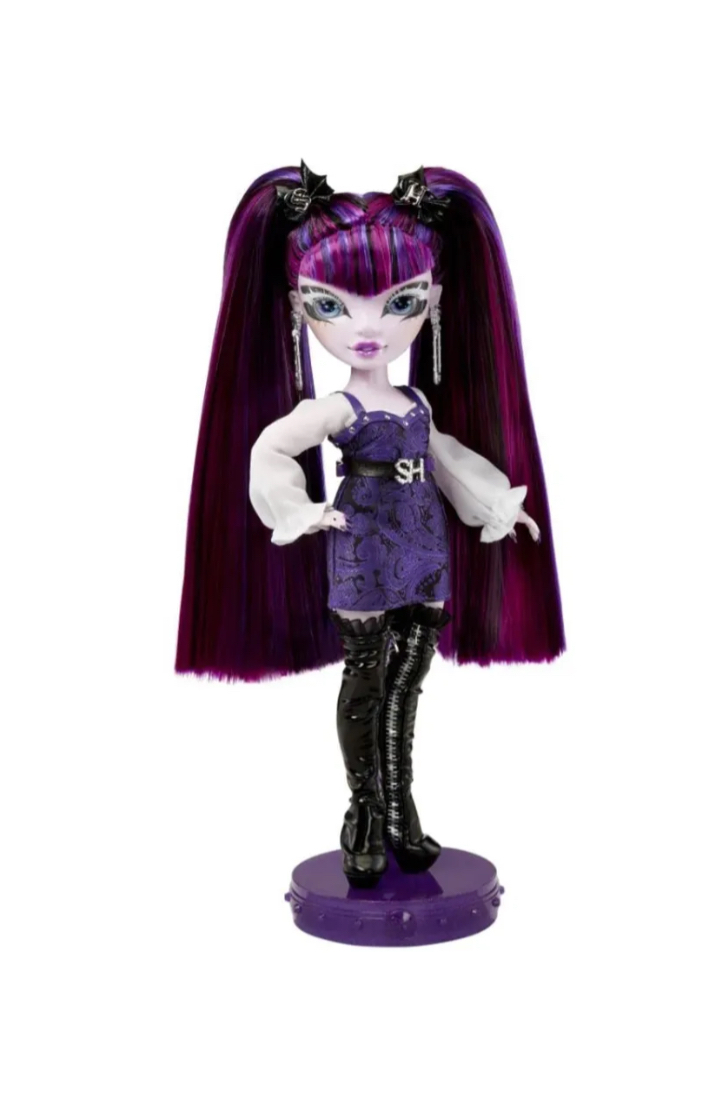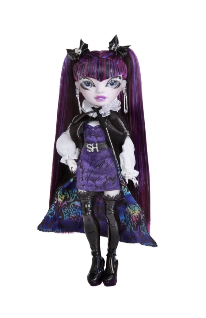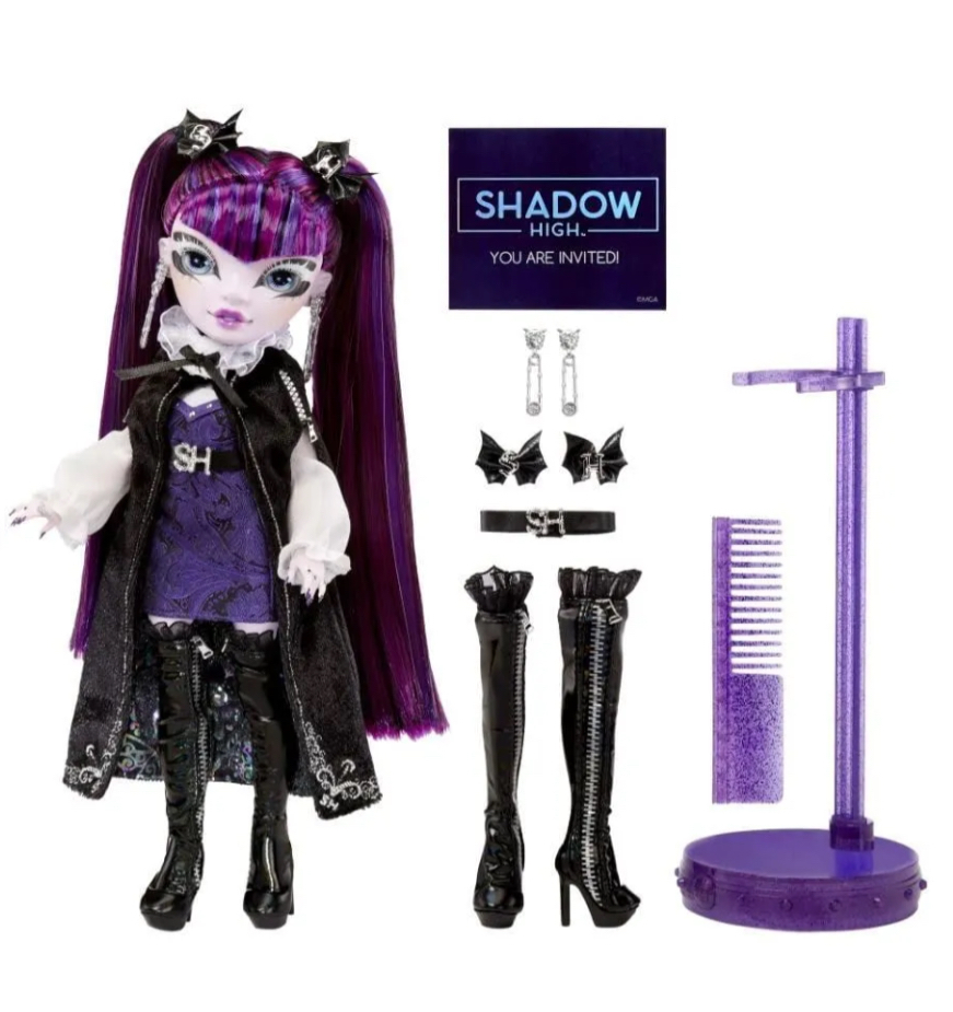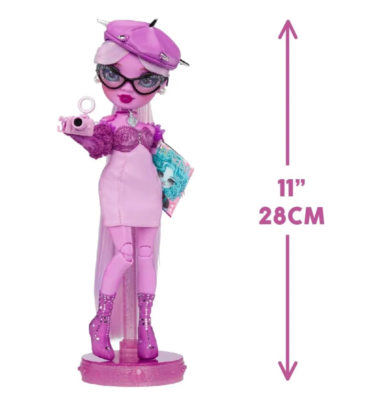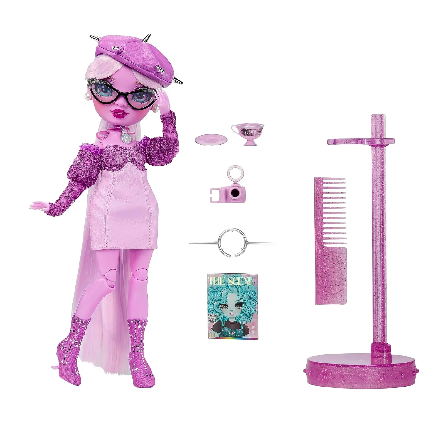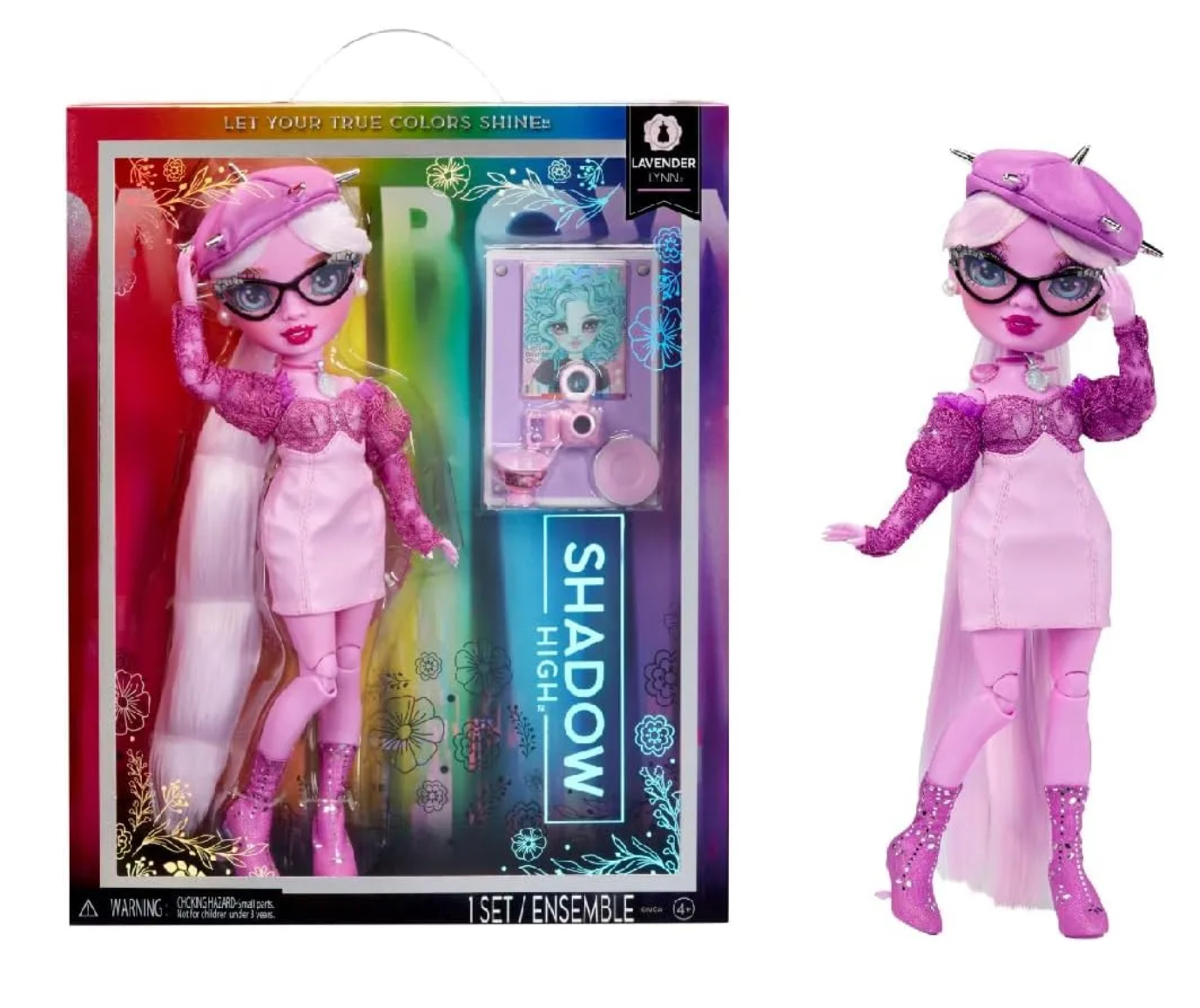 Радуга предназначена для всех. Куклы Rainbow High Shadow High входят в красочную коллекцию, представляющию классические цвета радуги, но с уникальными приглушенными тонами кожи Shadow High. Лаванда среднего телосложения, с кожей цвета лаванды и очень длинными белыми волосами, собранными в хвост с завитой челкой. У нее глаза цвета лаванды, тонкие брови цвета лаванды, слегка порозовевшие щеки и ярко-пурпурная помада.Она носит кожаный берет светло-лавандового цвета с серебряными шипами, а также серьги с белым жемчугом и ожерелье в клетку в тон. Для ее наряда у нее лавандовое платье с длинными рукавами и кружевными рукавами с более темными вставками, и она сочетает его с туфлями на шпильках лавандового цвета, покрытыми лавандовой сеткой.. В комплект входит модная кукла, 1 комплект кукольного наряда, 1 пара кукольных сапожек, 1 пара сережек, 1 заколка для волос, 1 пара очков, 1 фотоаппарат, 1 журнал, 1 чайная чашка и блюдце для чая, подставка для куклы. Игрушка имеет шарнирное строение, что позволяет придавать множество разнообразных поз фигурке. Высота куклы 28 см.Совет: перед игрой тщательно вымойте волосы кукле, что бы смыть гель для укладки. Высушите волосы до суха и расчешите. Соберите все 6 модных кукол Shadow: Пинки Джеймс – розовая, Скарлет Роуз – темно-бордовая, Рози Редвуд – красная, Берри Скайс – Зеленая, Оливер Оушен – голубая, Лаванда Линн – фиолетовая. Куклы продаются отдельно.