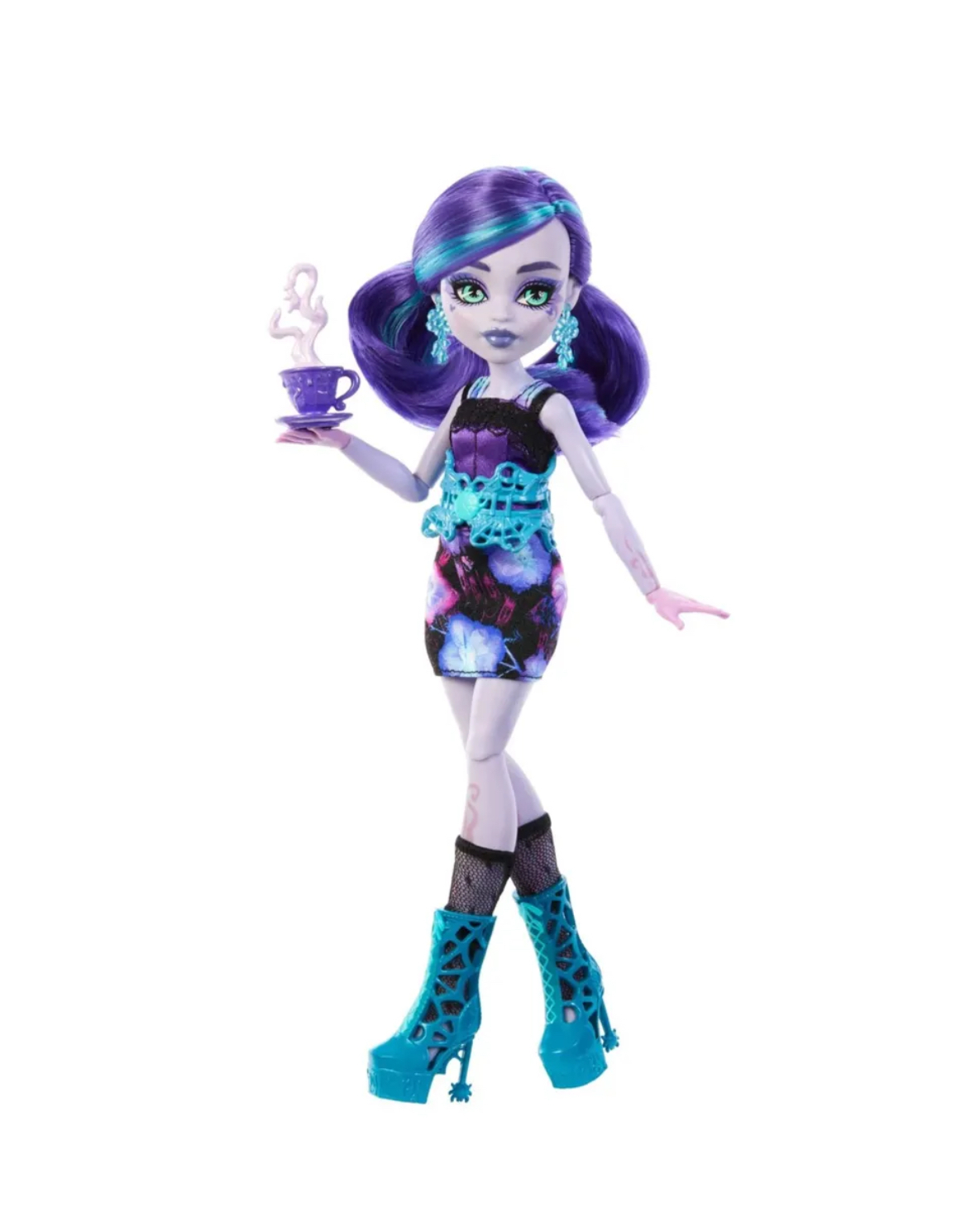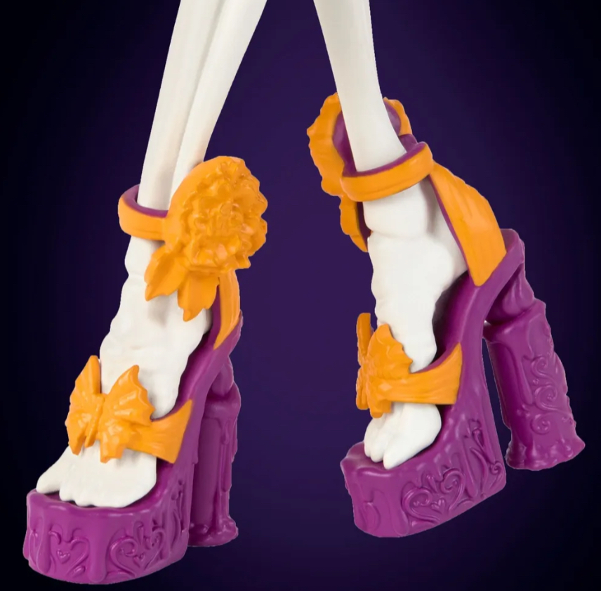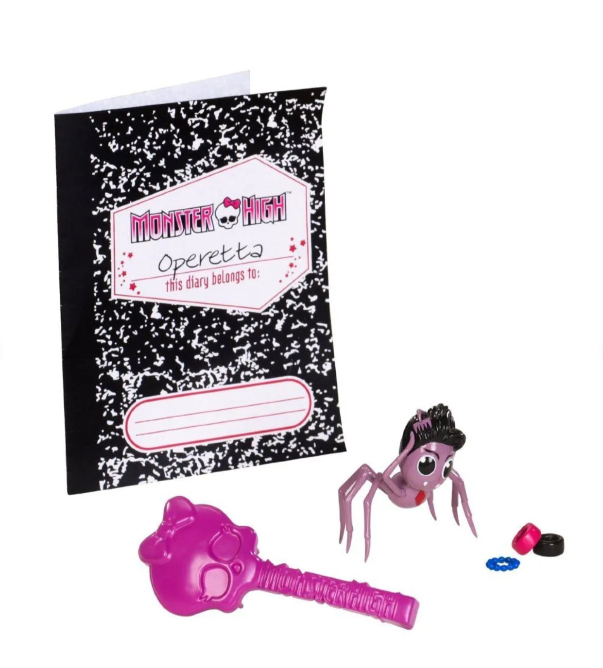 В своем оригинальном наряде, состоящем из блузки с воротником-стойкой, жакета с пышными рукавами и джинсов-капри, Оперетта воплощает настоящую фантазийную модуЗавитая челка обрамляет ее фирменный монокль в форме сердца и серьги-кубики, а драпированный пояс с нотами и каблуки со скрипичным ключом создают мелодичные акцентыУ нее также есть жутковатый стиль и предметы для рассказывания историй: гитара, затянутая паутиной, дневник, щетка и, конечно же, ее любимый питомец Мемфис “Папочка О” ДлинноногийКуклу "Оперетта" можно держать на локтях, запястьях и коленях - поставьте ее на подставку для кукол, которая входит в комплект поставки, чтобы она могла играть и демонстрироваться на всеобщее обозрениеПоклонники могут собрать больше оригинальных гулей из школы Монстер Хай для встречи выпускников, каждая из которых продается отдельно, в зависимости от наличия