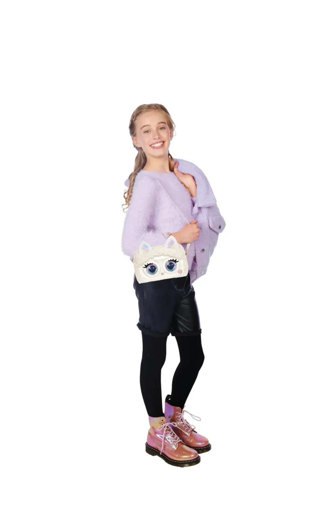 Сумочка - питомец Пушистая Лама сделана из мягкой шерпы, имитирующей мех, и дополнена модной фурнитурой. У этой модной сумочки очень выразительные глазки в стиле поп-арт. Она умеет моргать и может взаимодействовать с тобой. Обними ее и она покажет тебе, как сильно она это любит! Выглядит просто очаровательно. Посмотри на ее глазки в стиле поп-арт и красивые ушки! Отрегулируй длину ремешка и отправляйся на прогулку. В режиме «В движении» сумочка будет хлопать ресницами, издавать забавные звуки, а также реагировать на прикосновение ко лбу. Обними эту милашку и услышишь, насколько она это любит. Нажми на кнопку с логотипом в нижнем правом углу сумочки и узнаешь, на что еще она способна. В режиме ""Волшебный"" ты можешь играть с ней в игры и позировать. Хочешь узнать, что думает сумочка о твоем наряде? Перейди в режим ""Как живая"", дотронься до ее лба и она ответит тебе аплодисментами. Чем они ярче, тем больше твоей сумочке нравится твой образ! Включи режим «Подиум Ремикс» и демонстрируй свой наряд под современные биты! Меняй треки как настоящий диджей, похлопывая по лбу сумочки, и услышишь характерный звук замиксовки. Танцуй под музыку и позируй, чтобы сделать модное фото, когда музыка остановится. Это так весело!Больше, чем сумочка! Больше, чем питомец!