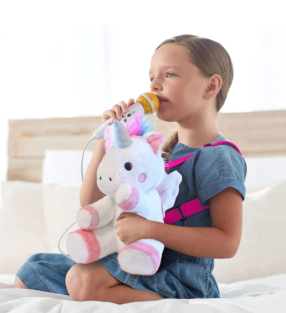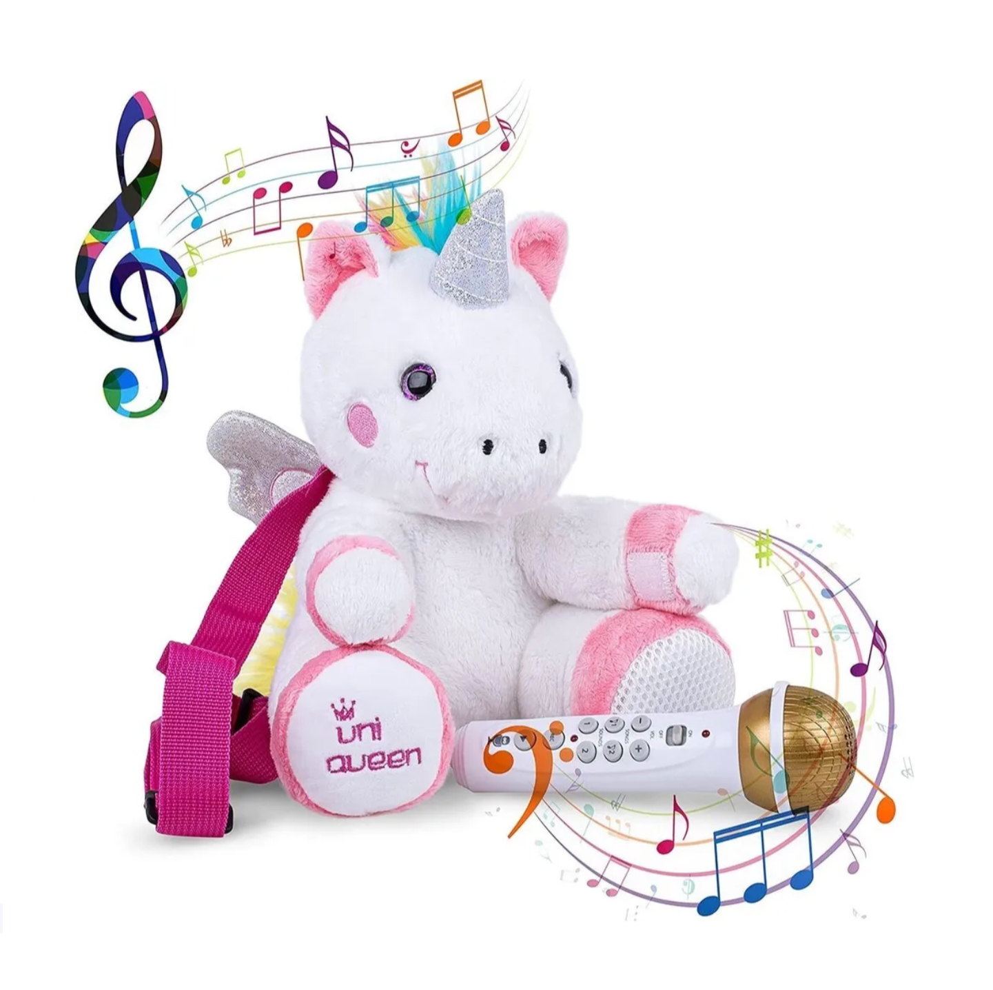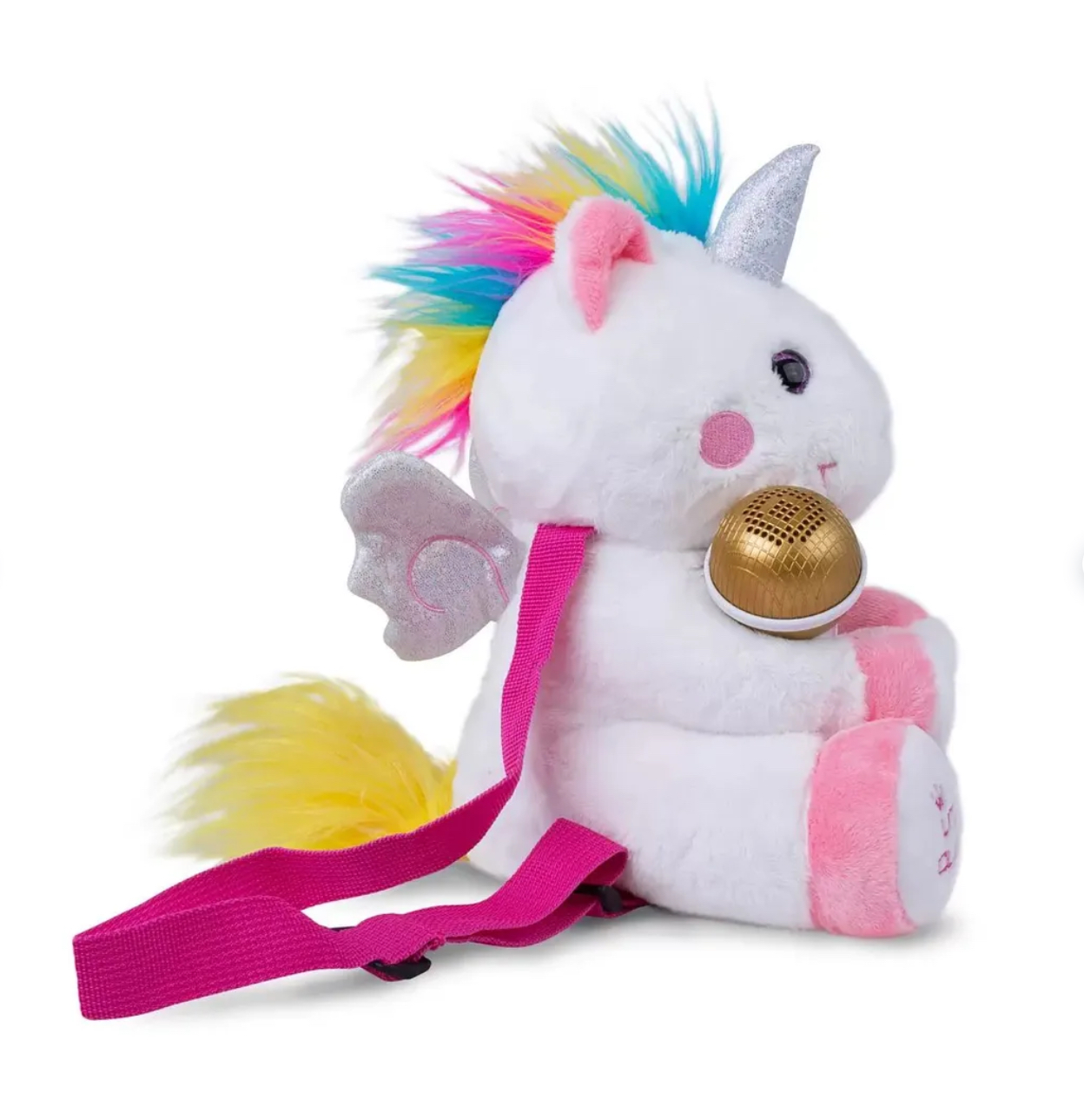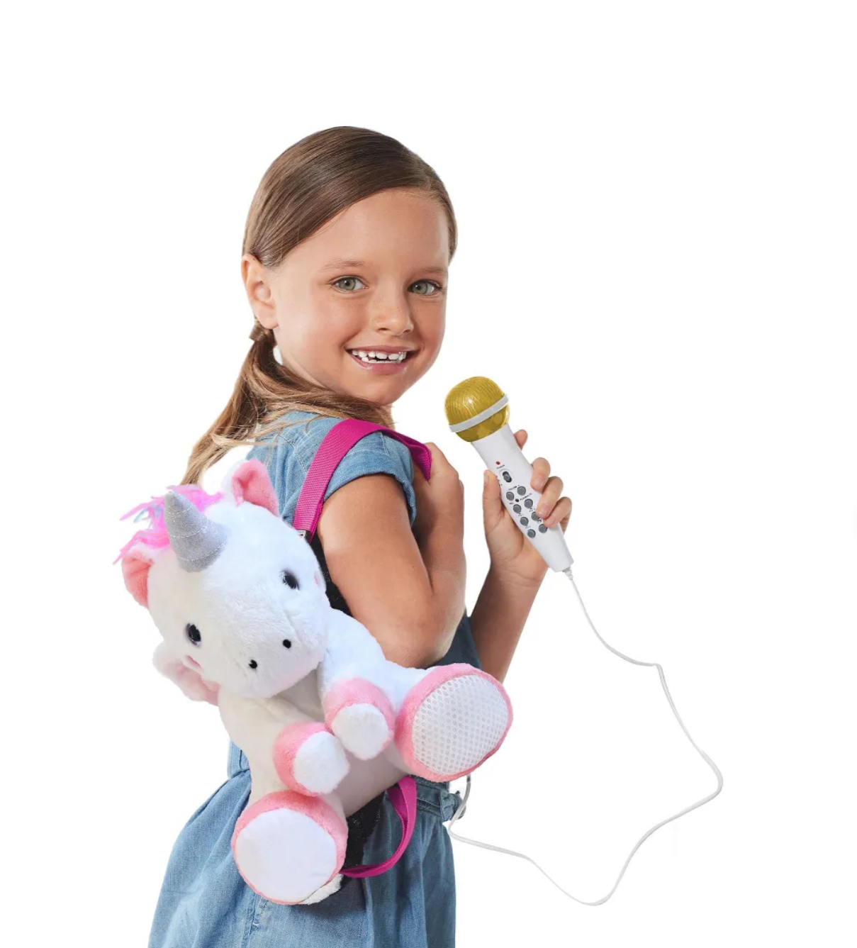 Благодаря встроенному динамику, двум предварительно загруженным песням, забавным звуковым эффектам и удобным лямкам для рюкзака можно петь где угодно! Кроме того, ваш милый друг надежно держит микрофон.Караоке-развлечения для детей в виде Плюшевого рюкзака - единорога Uni Queen с колонками и микрофоном Sing Along Crew с песнями, звуковыми эффектами и записями станет идеальным подарком для ваших маленьких рок-звезд. В комплект входит встроенный динамик, проводной микрофон и плечевой ремень с держателем для микрофона. Плюшевый персонаж со встроенным динамиком и микрофоном.2 песенных трека.2 забавных звуковых эффекта.Функция записи и воспроизведения.Регулируемые лямки с держателем микрофона.Регулятор громкости.Работает от 3 батареек типа АА (не входят в комплект).