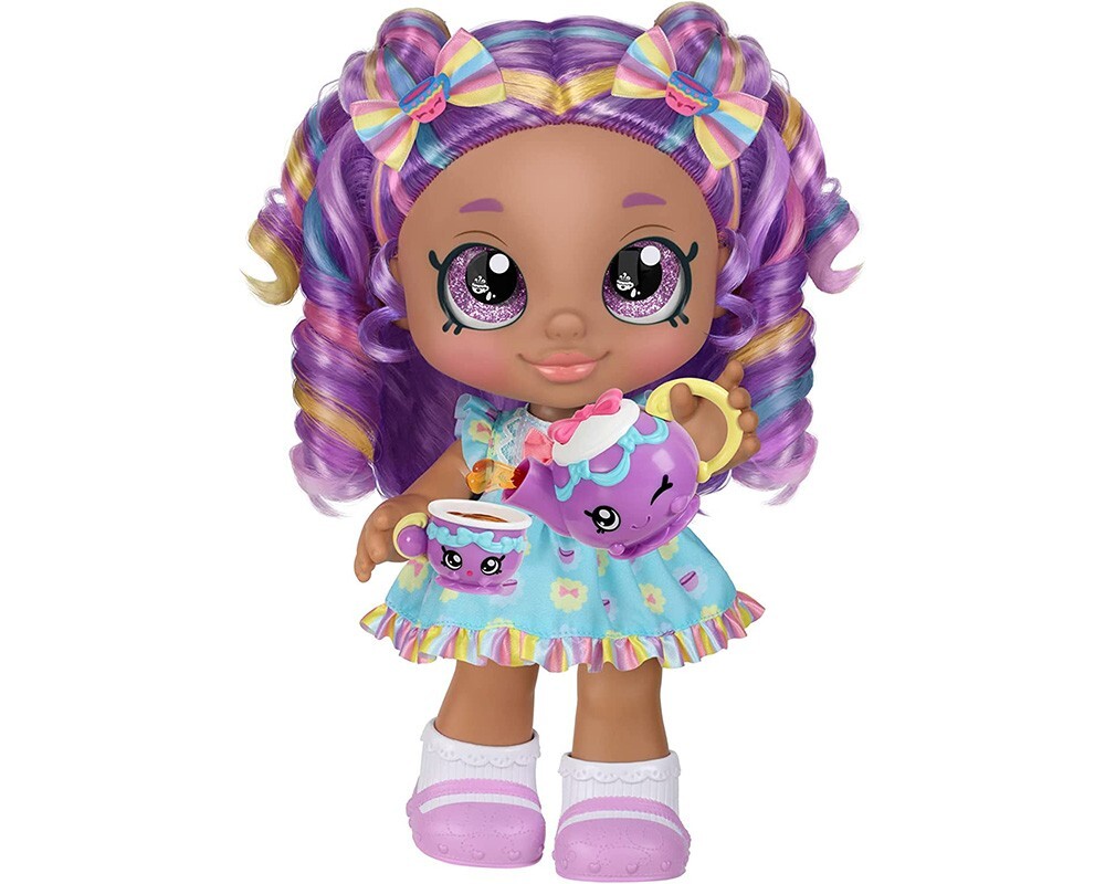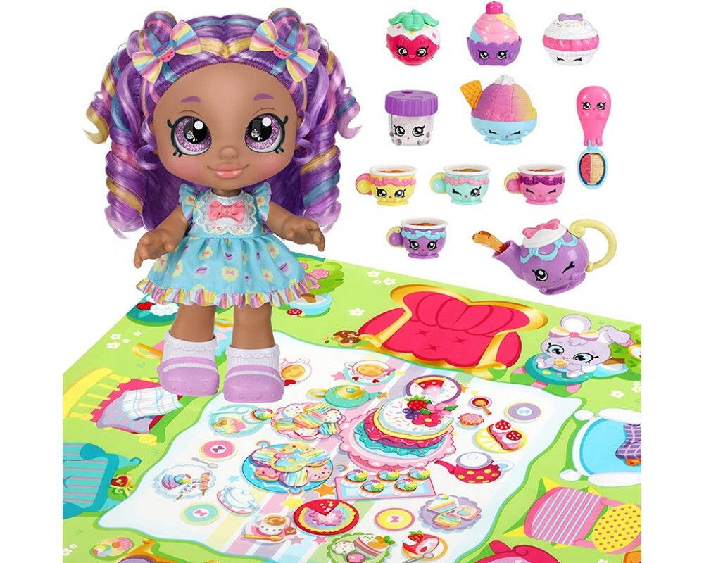 Чаепитие еще никогда не были такими веселыми! В меню всегда смех и улыбки, когда Кирстеа устраивает чаепитие со всеми своими Шопкинсом. Пригласите всех своих друзей из Kindi Kid из Rainbow Kindi провести время на огромном игровом коврике Кирстеа. Играйте и притворяйтесь с их интерактивными Шопкинсом и откройте для себя их волшебные движения. Используйте волшебную ложку, чтобы наблюдать, как Кирстеа и другие дети Кинди выбирают свое любимое мороженое, пока вы их кормите. Наклоните чайник Shopkins и волшебным образом налейте чай из носика. Выньте кекс «Шопкинс» из обертки и наблюдайте, как Кирстеа «съедает» вишенку сверху, когда вы подносите ее ко рту! Другие Shopkins включают пушистые макароны и шейкер с движущейся посыпкой. Kindi Kids может держать чашки и ложку в руках, наслаждаясь лакомствами. Kirstea поставляется с красочным игровым ковриком размером 24 x 24 дюйма, достаточно большим, чтобы на нем могли играть двое или более Kindi Kids. Кирстеа одета в красивое платье феи-кекса и у нее одинаковые розовые и синие волосы. У нее большие яркие глаза. Ее платье и туфли сменные и легко снимаются маленькими детскими ручками. Девочкам понравится устраивать чаепитие с этой забавной куклой дошкольного возраста и всеми ее друзьями из детского сада, когда ее мир оживает.