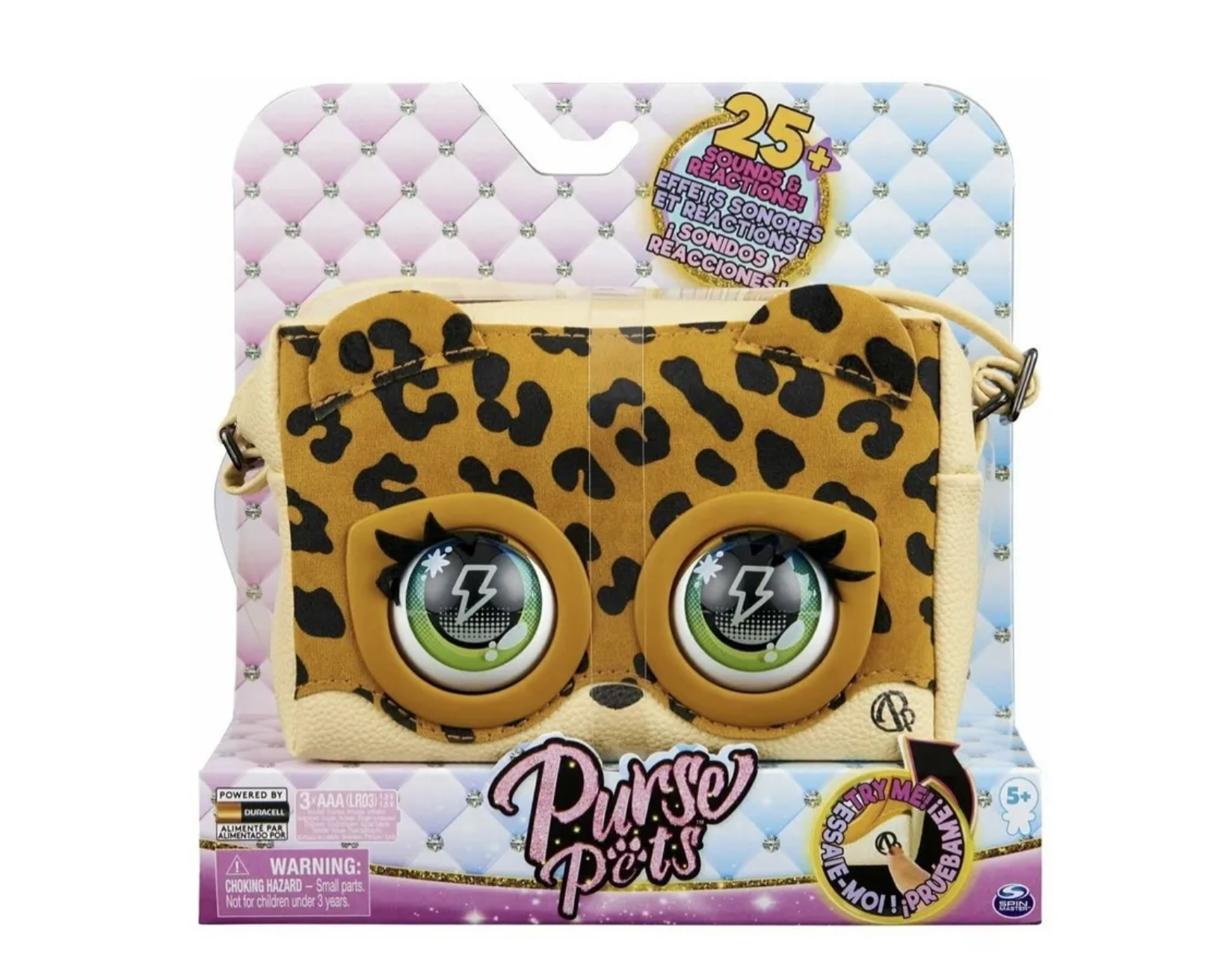 Встречайте главный тренд этого сезона: интерактивная сумочка-питомец Purse pets от Spin Master! Выбирай из 4-х модных дизайнов: стильный единорог, шикарный леопард, яркая лисичка или очаровательный щенок. Каждая сумочка-питомец Purse pets это не просто стильный аксессуар, но и интерактивный питомец, который реагирует на прикосновения, моргает и может издавать более 25-ти уникальных звуков и реакций. Больше, чем сумочка! Больше, чем питомец!ПРЕМИАЛЬНЫЙ ДИЗАЙН: сумочка-питомец леопард выполнена из искусственной кожи нежного бежевого оттенка и дополнена яркой вставкой из ткани с леопардовым принтом, и металлической фурнитурой. ИНТЕРАКТИВНЫЙ ПИТОМЕЦ: сумочка не просто аксессуар, а настоящий питомец! Она умеет моргать и реагирует на твой голос, прикосновения и движения. ИГРЫ И ЗВУКИ: Задай своему питомцу вопрос "да" или "нет", и она ответит! Включи музыку и продемонстрируй свой образ в режиме «Подиум». СТИЛЬНЫЙ АКСЕССУАР: Сумочка-питомец это идеальный подарок для девочек от 5-ти лет. Размеры сумочки 10,5 см (В) х 15,5 см (Ш) х 6 см (Г).