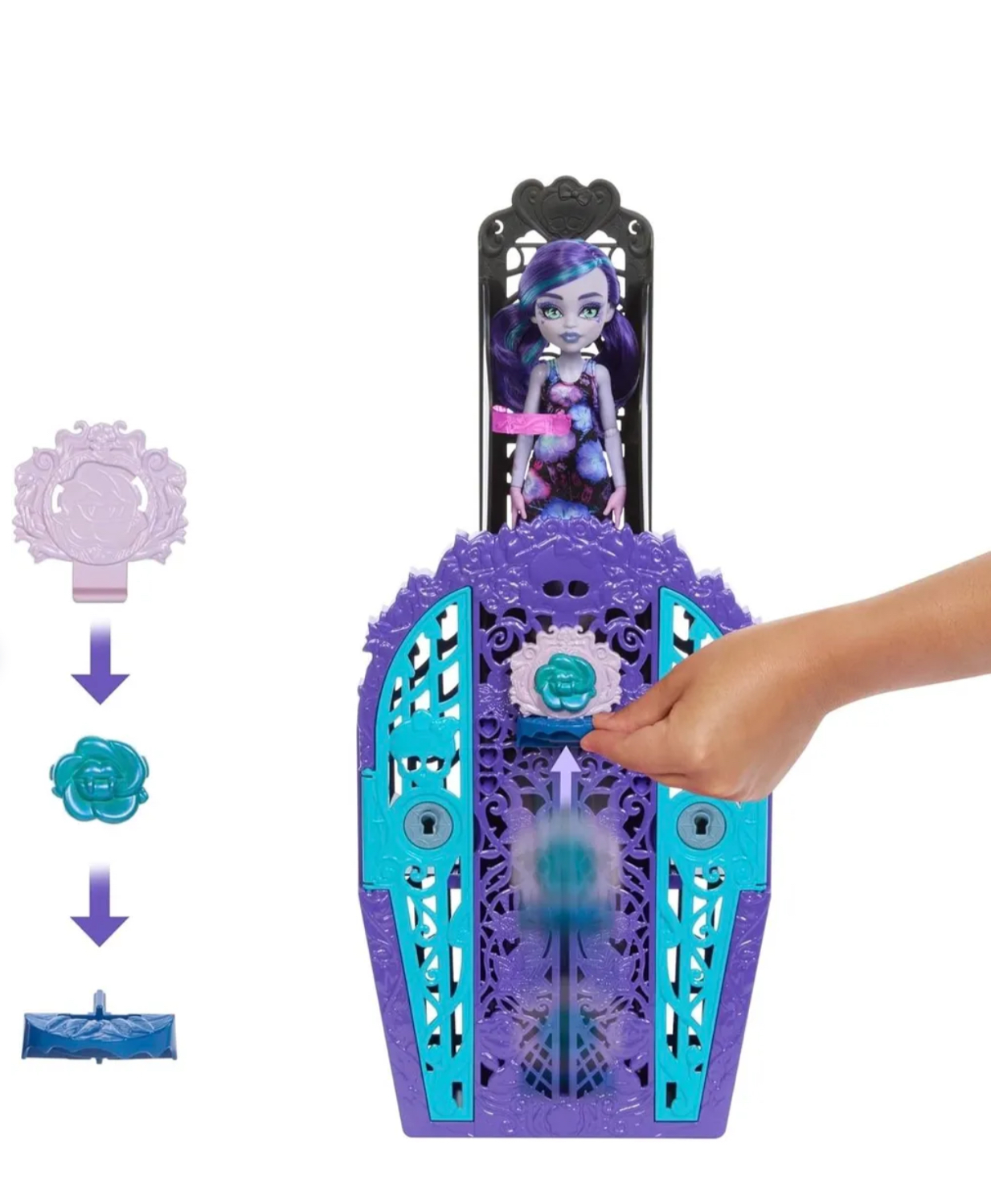 Раскройте секреты за воротами Школы Монстров с помощью этого гардеробного набора Skulltimate Secrets: Garden Mysteries! В комплект входит кукла Твайла, а также очаровательная одежда и аксессуары.