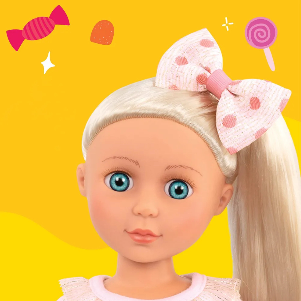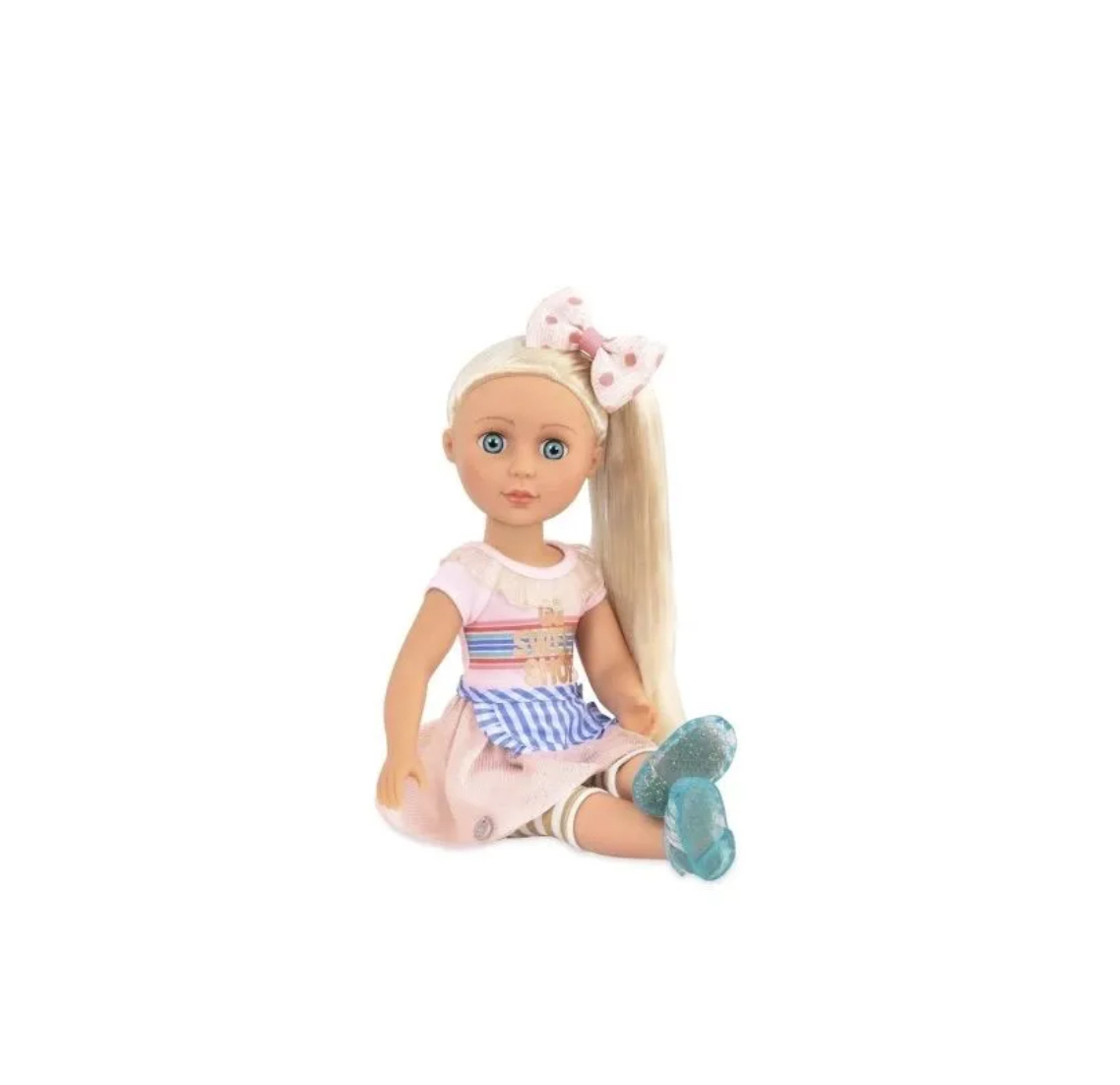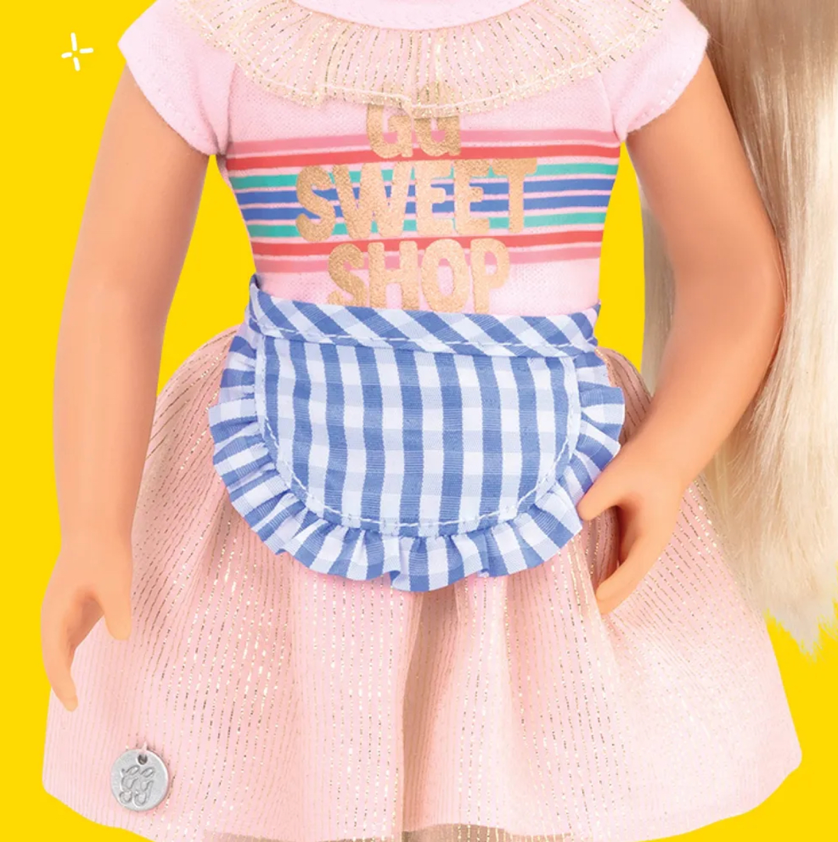 Glitter girls - это серия коллекционных подвижных кукол изготовленных из экологически чистых материалов. Куклы бренда Glitter girls мечта каждой маленькой девочки! Это прекрасный подарок для вашей принцессы, который обязательно приведет в восторг на любом празднике. Голова куклы может поворачиваться, руки сгибаются в локтях, а ноги в коленях, что делает ее идеальной игрушкой для творческой игры. Используйте все воображение, чтобы придумать самые интересные ситуации и образы для вашей куклы. Крисси проводит свои блестящие дни в кондитерской GG Sweet Shop, где ей нравится дарить улыбки своим друзьям! У нее ярко-голубые глаза и длинные светлые волосы, собранные в хвост, который очень интересно расчесывать и укладывать. Это подвижная кукла, которая может вращать шею, руки и ноги, а также сгибаться в коленях и локтях, чтобы подавать сладости всем своим друзьям! Каждая 14-дюймовая (35 см.) кукла Glitter Girls поставляется с одним полным нарядом, а Крисси нарядилась для своего дня в кондитерской. На ней длинное розовое платье, полосатые леггинсы карамельного цвета, сине-белый фартук, повседневные туфли и блестящий бант для волос (для дополнительного блеска)! Ее наряд также имеет легко открывающиеся застежки, благодаря которым ее можно легко комбинировать с другой одеждой и аксессуарами Glitter Girls, чтобы Крисси могла отправиться в другие блестящие приключения (продаются отдельно).