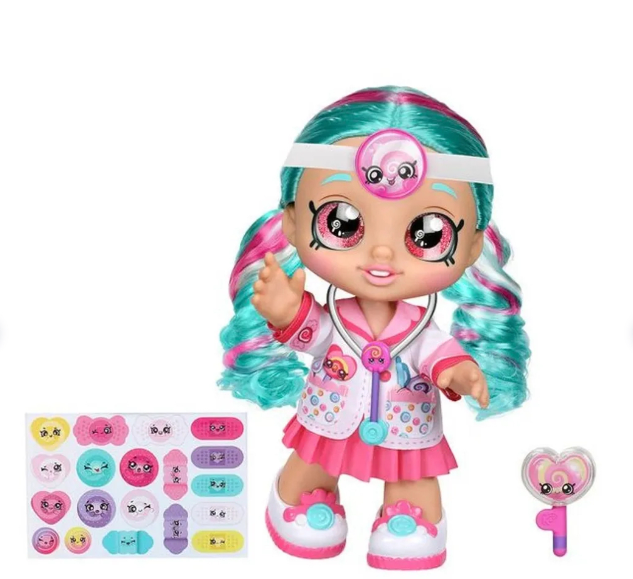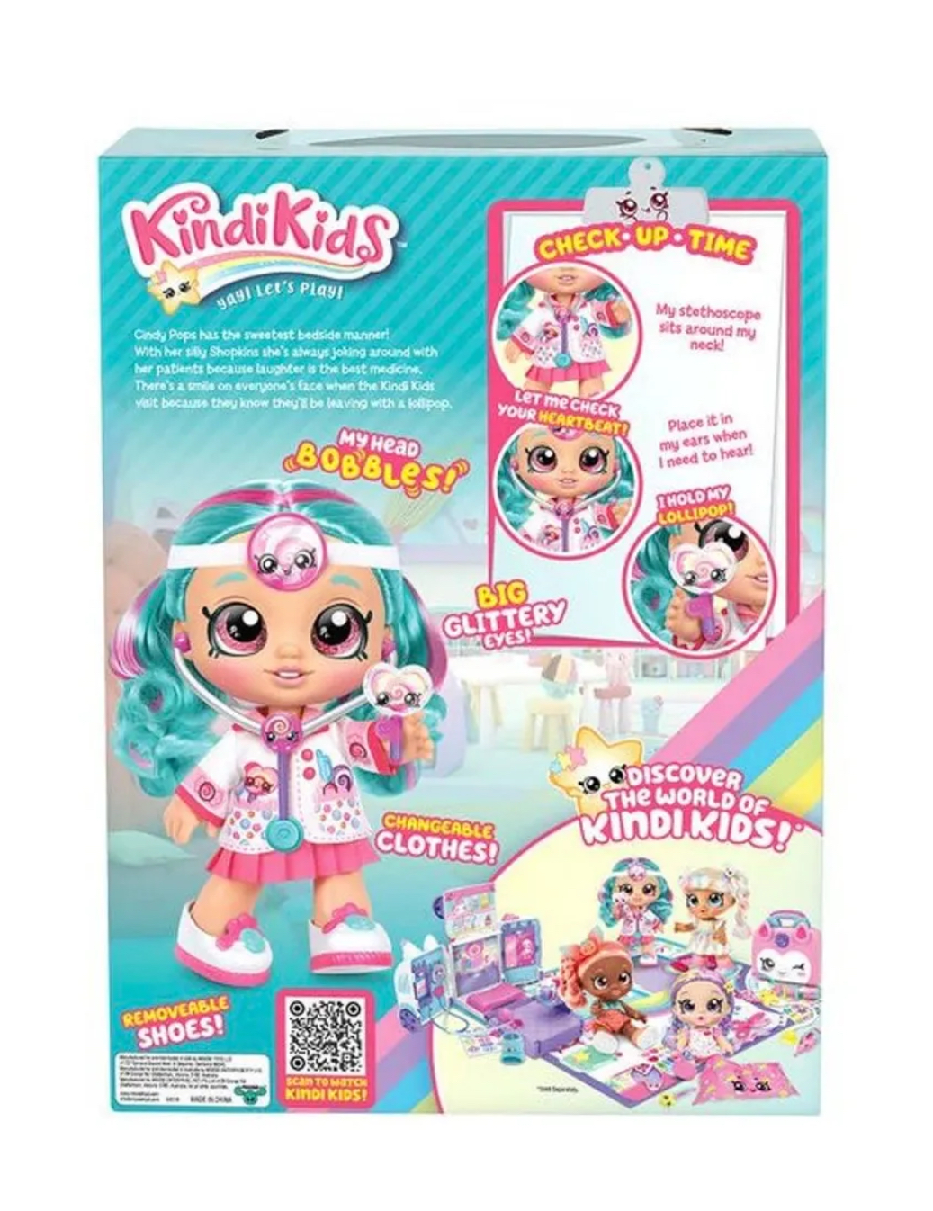 Синди Попс обожает играть в Докторов! Одетая в самый милый костюм Доктора, она обладает самыми милыми манерами у постели больного.Kindi Kids "Fun Time Friends" - самые милые дошкольники в округе! Эти очаровательные девчонки полны веселья и игр, и они любят посещать Rainbow Kinder - место, где каждый день посвящен совместным играм и знакомствам!С помощью стетоскопа и леденца Shopkin, который помещается в ее руке, она лечит своих пациентов и заставляет своих друзей выздоравливать. У Синди большие блестящие глаза, красивые волосы и очаровательная голова, которая качается при каждом движении!