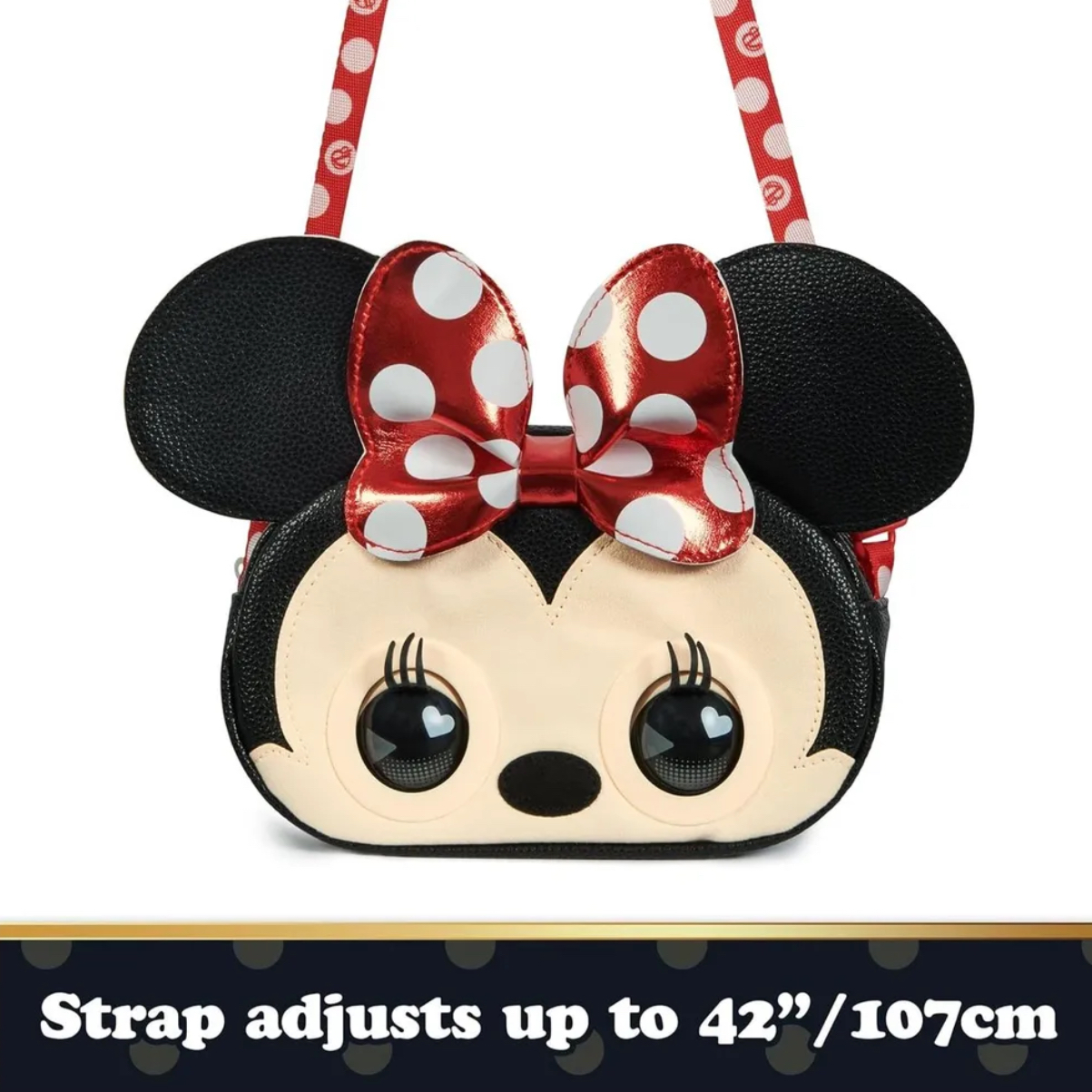 У этой милой и сумочки для девочек Disney Minnie Mouse глаза действительно мигают! Когда вы в движении, она моргает и взаимодействует с вами. Прикоснитесь к ее лбу, чтобы зарядиться поцелуем! Звуки и реакции оживляют Минни! Игрушки Purse Pets Disney издают уникальные звуки, воспроизводят музыку и многое другое (игрушки для девочек продаются отдельно). Требуются 3 батарейки типа ААА (не входят в комплект). Проверьте счетчик любви Минни, чтобы узнать, насколько ей нравится ваш наряд! Создайте свой подиумный образ под ее музыку и коснитесь ее головы, чтобы развеселить ее! Интерактивная сумочка через плечо: С ее культовым металлическим бантом в горошек, глазами-сердечками и фактурной искусственной кожей Минни станет забавным дополнением к вашим ушкам Disney и одежде для отпуска! Регулируемый ремешок подойдет для всех возрастов!