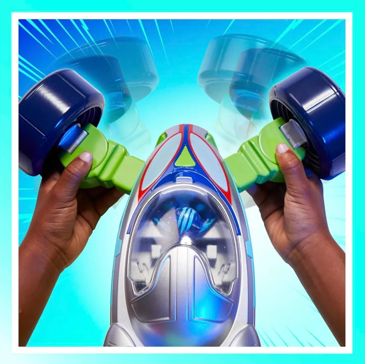 ТРАНСФОРМИРУЕМ ИГРУШЕЧНЫЙ автомобиль PJ MASKS: Представьте себе героические приключения с этим масштабным автомобилем PJ Masks Power Heroes 3 в 1. Меняйте положение колес, чтобы перевести автомобиль в режим "земля", "море" или "воздух", и включайте свет и звуки, характерные для этого режима.
